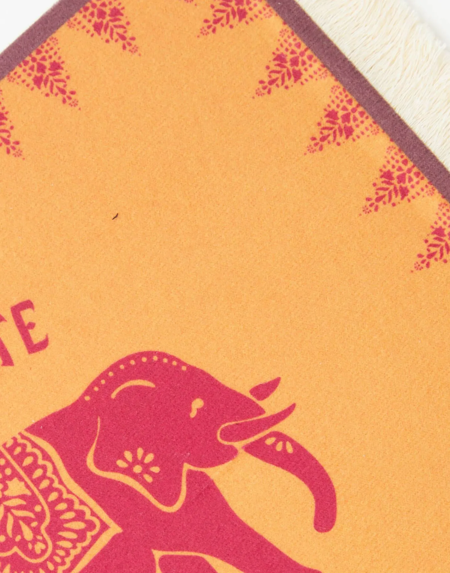 Alfombrilla para ratón en formato rectangular con terminaciones deshilachadas.