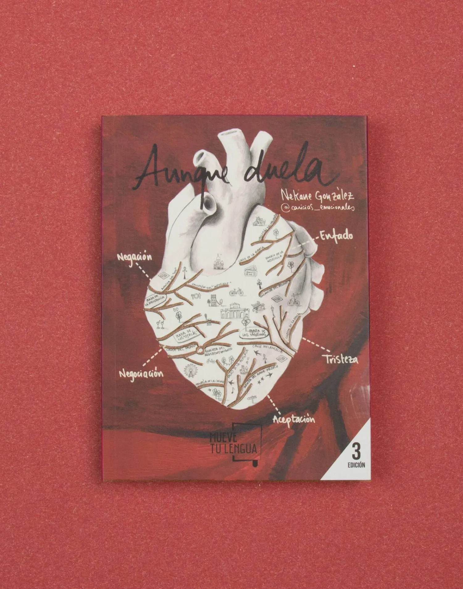 Nekane González, más conocida en redes como @caricias_emocionales publica con MueveTuLengua por primera vez para plantearnos estas preguntas y a su vez, nos da las claves y nos lleva de la mano por el viaje que supone superar un duelo amoroso. Como esa amiga que nos dice lo que a veces no queremos oír, como un viaje no lineal donde cada parada que hacemos es una fase a vivir y a superar, Aunque duela transita de la poesía a la prosa poética, pasando por un sinfín de consejos que intentarán reconstruir corazones rotos, abatidos, detonados.