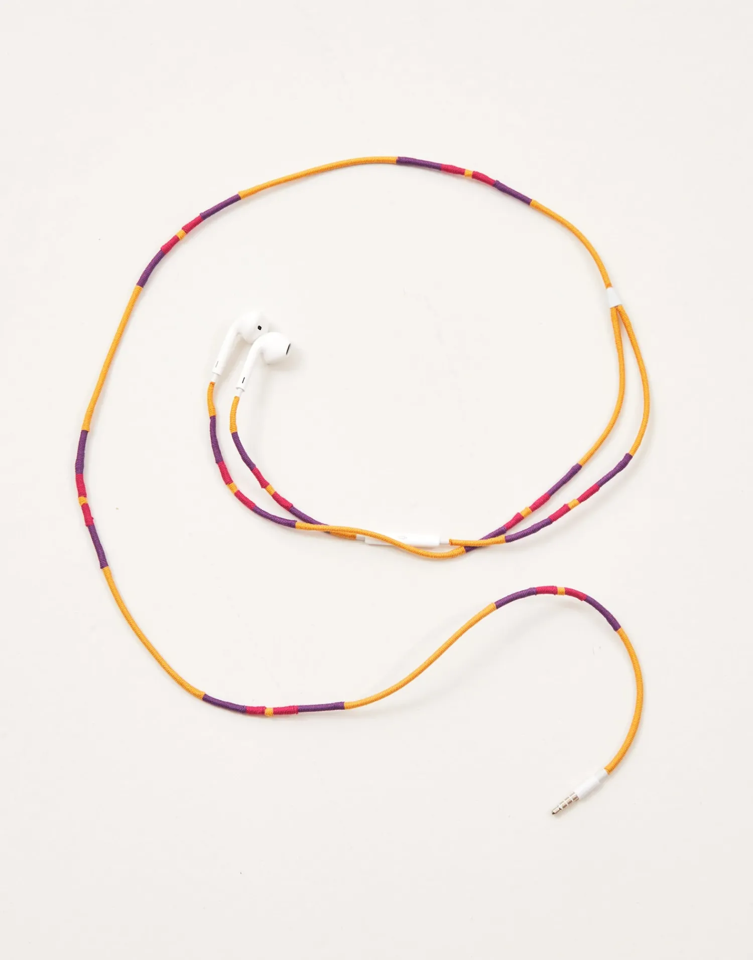 Auriculares con cable cubierto de tela trenzada para prevenir enredos y protegerlo de grietas, roturas y sudor. Micrófono y control de volumen incluídos, además de función de coger y colgar llamadas, saltar y pausar música o vídeo.