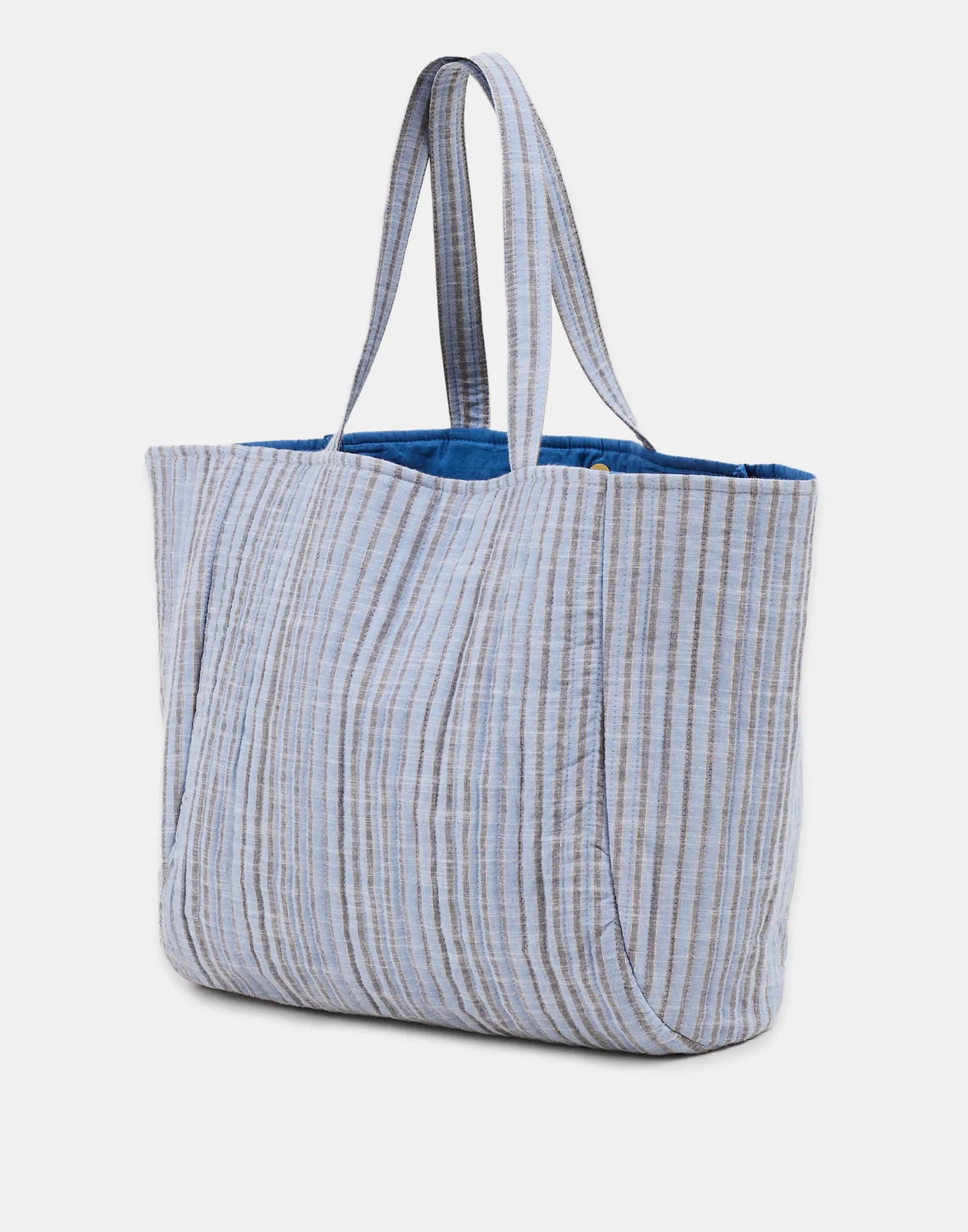 Bolso estilo shopper con doble asa para llevar al hombro, cierre imantado y bolsillo interior. Detalle de hilo metalizado.