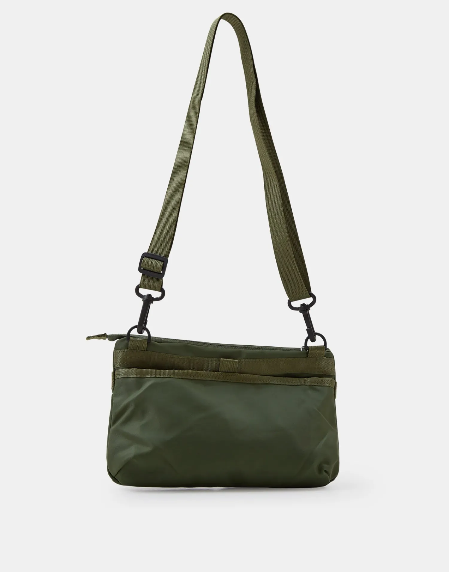 Bolso de tejido resistente con asa larga ajustable y extraíble para llevar cruzado o para usar como neceser. Cierre de cremallera. Bolsillo interior oculto con cierre de cremallera y bolsillo exterior con cierre de velcro. Un accesorio perfecto para tus viajes.