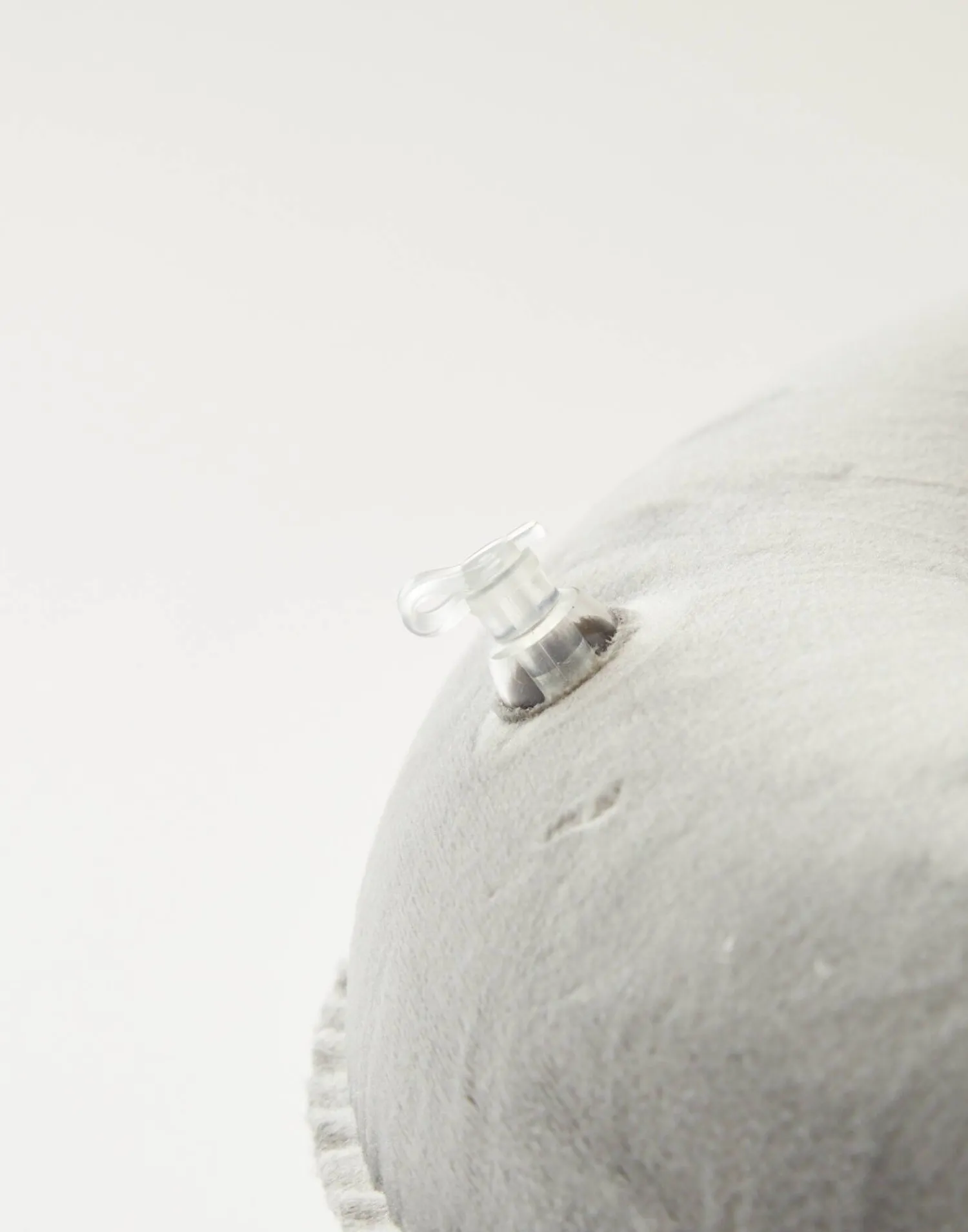 Cojín de viaje plegable en tejido de terciopelo suave, con válvula para poder inflarlo sin esfuerzo. Incluye bolsa donde poder almacenarlo para transportarlo de manera fácil y cómoda.
