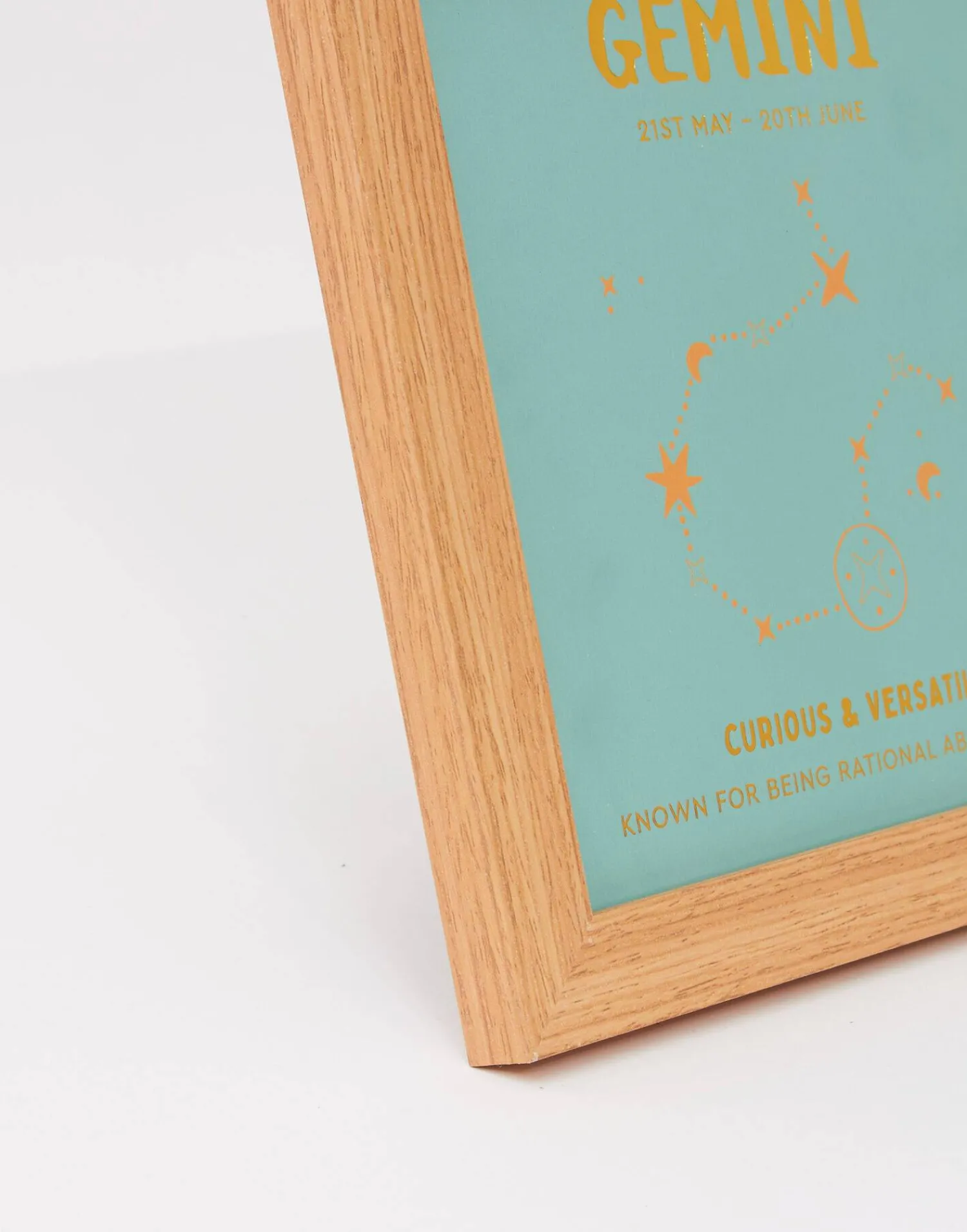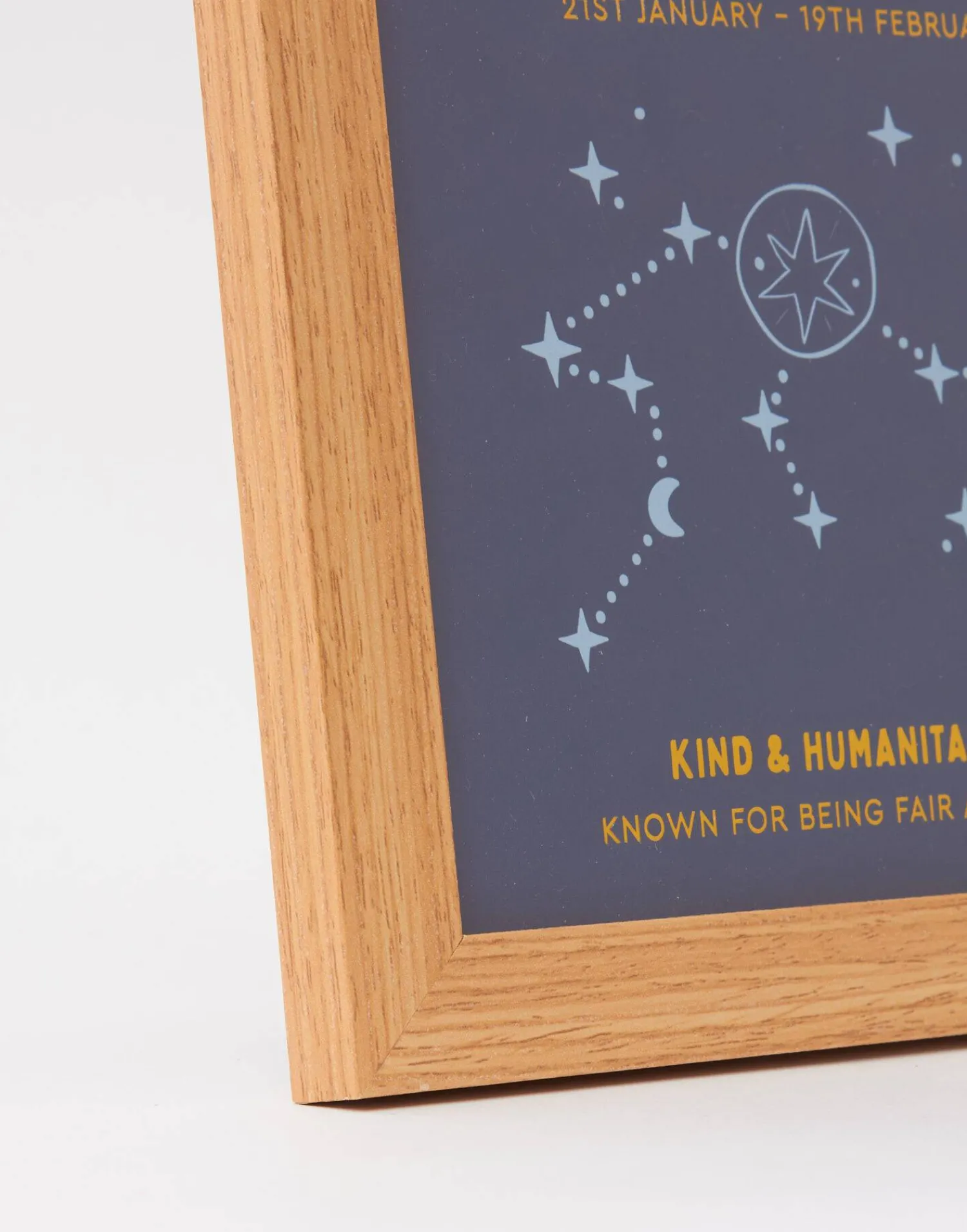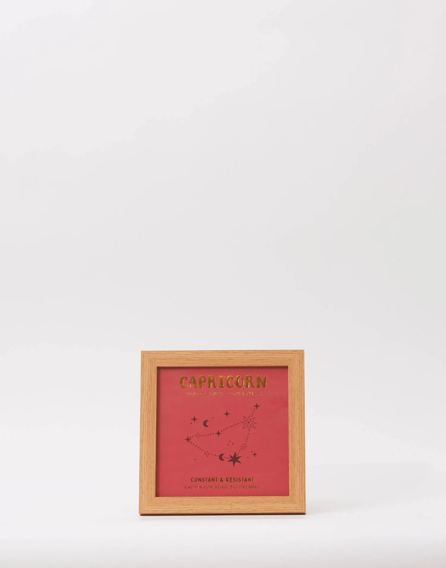 Lámina con ilustración de zodíaco enmarcada en madera.