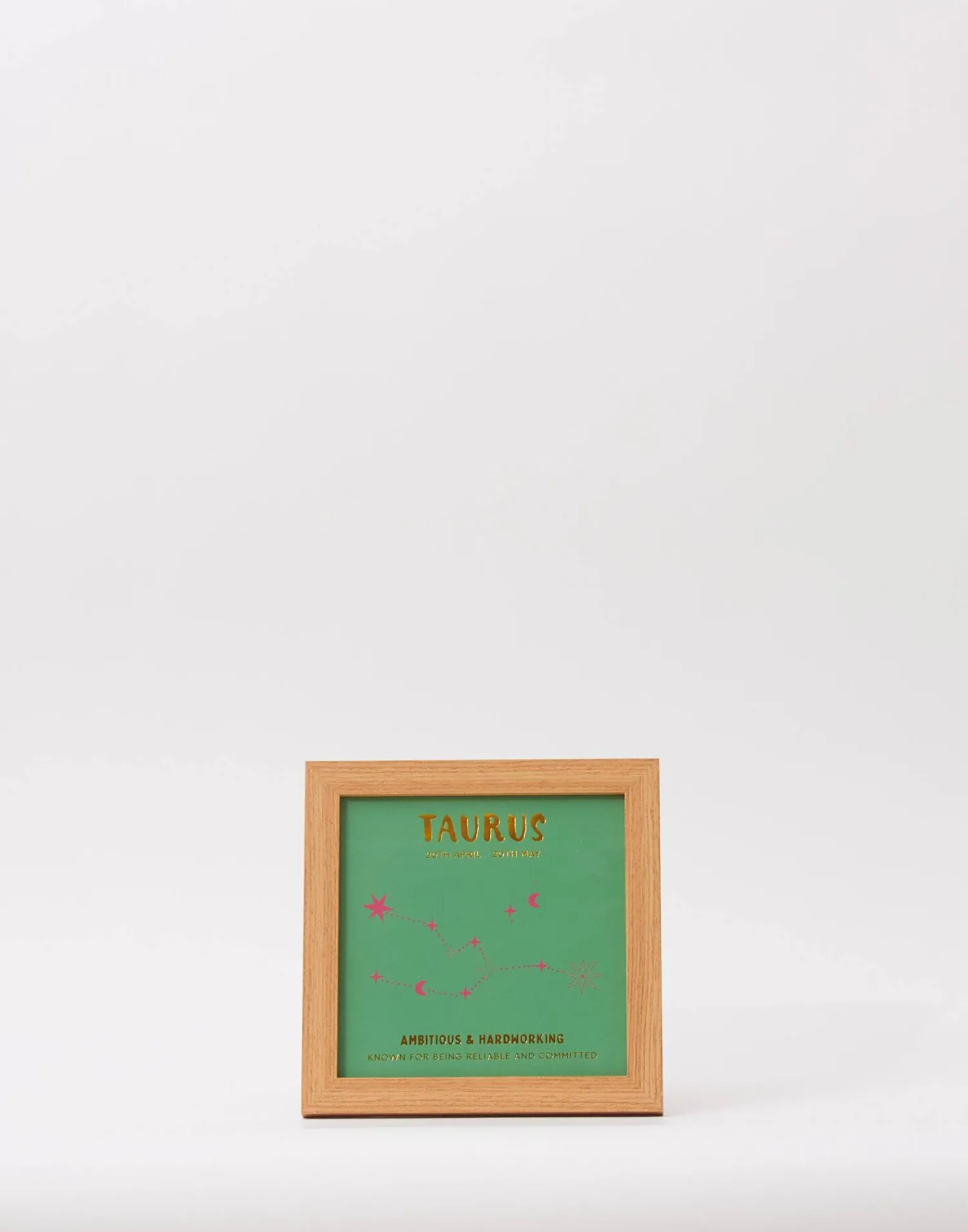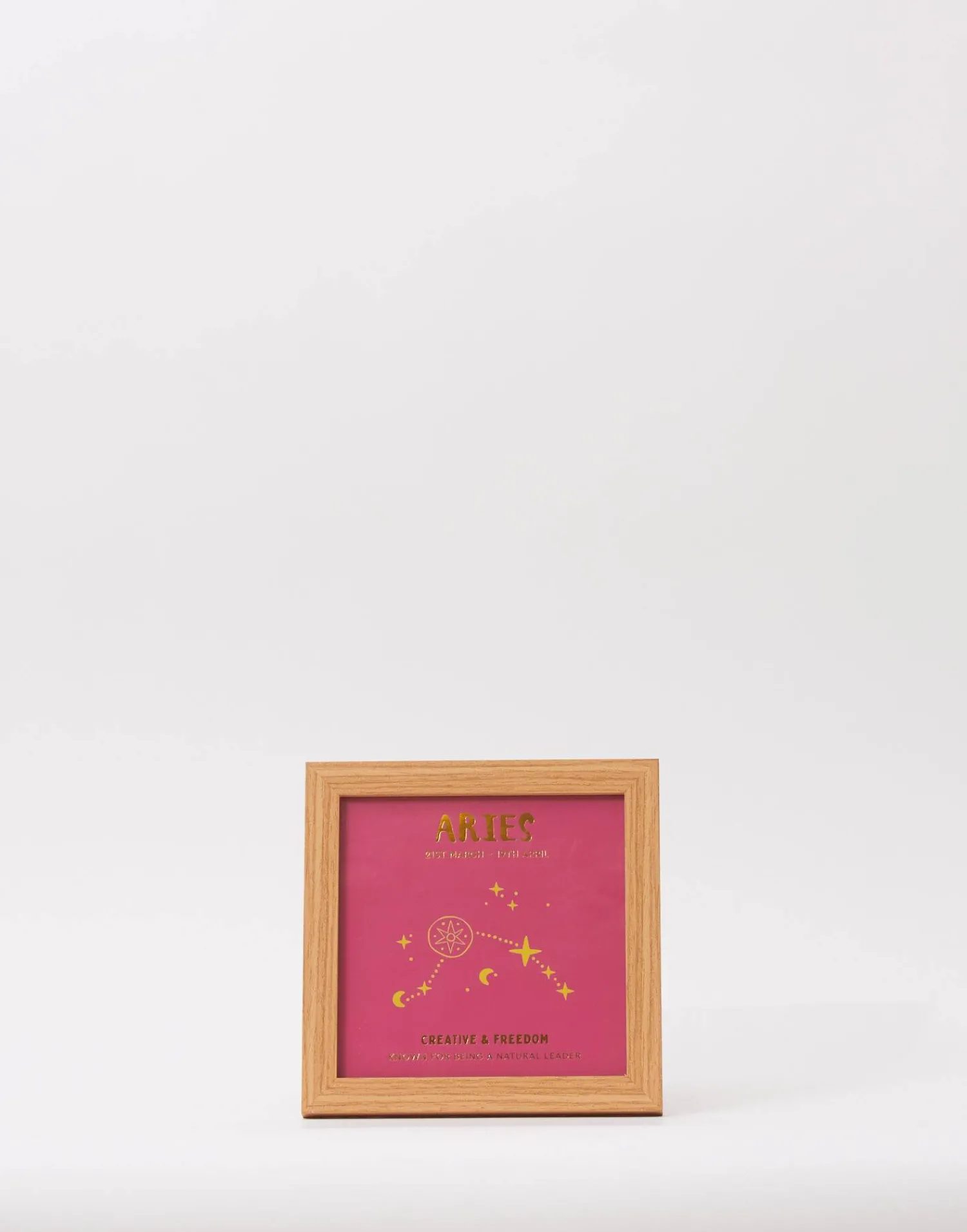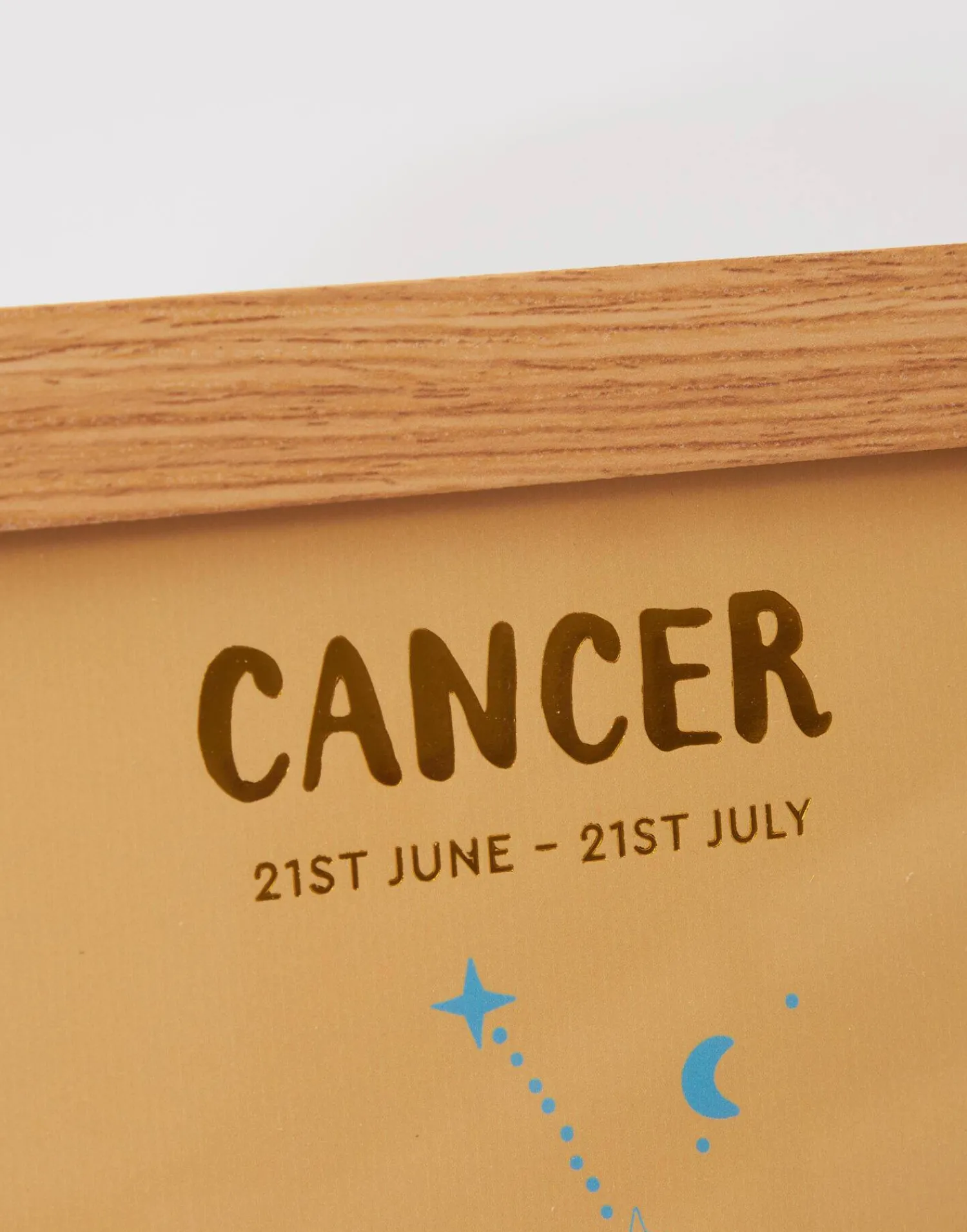 Lámina con ilustración de zodíaco enmarcada en madera.