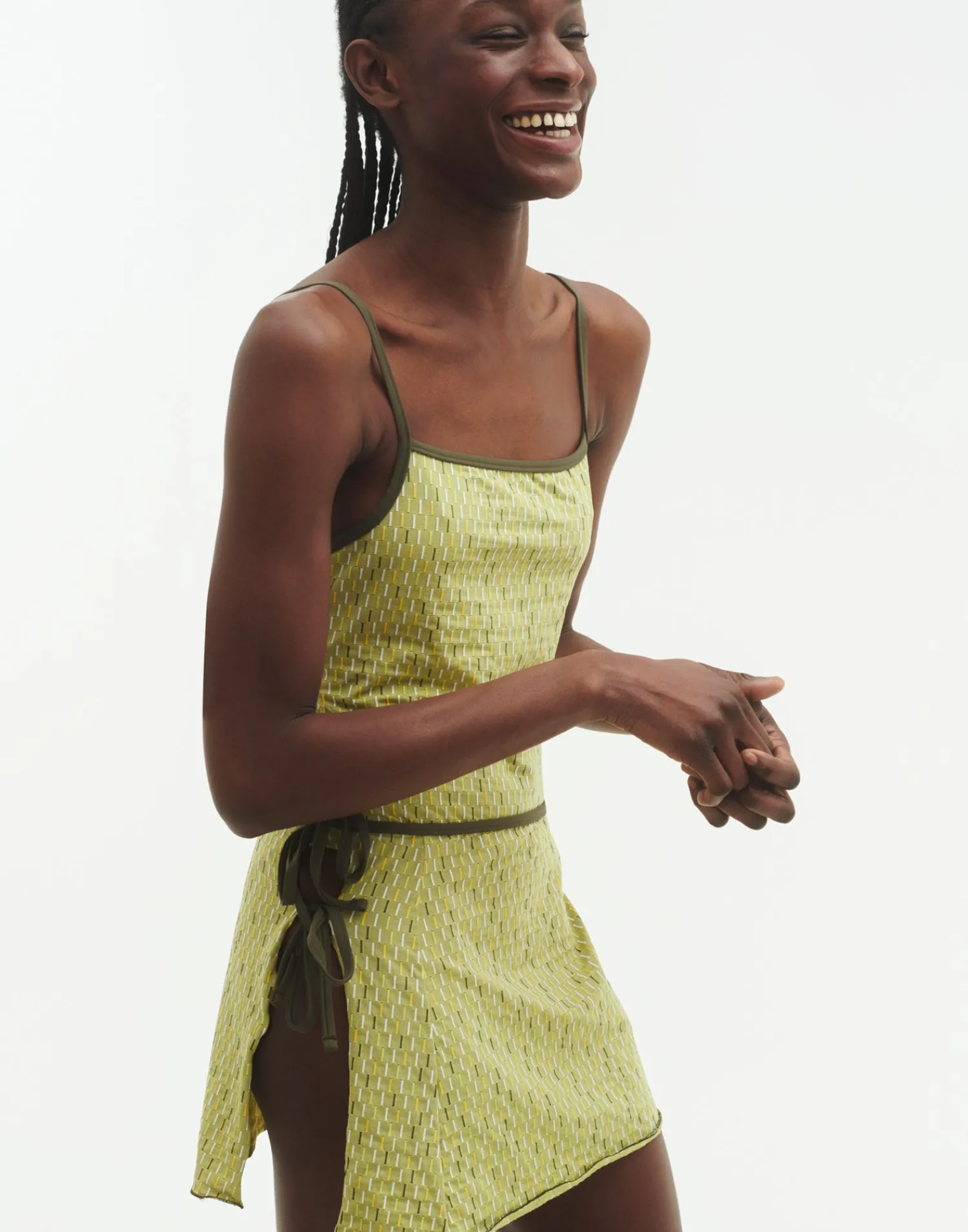 Pareo corto con print texturizado y tiras para anudar a la cintura.