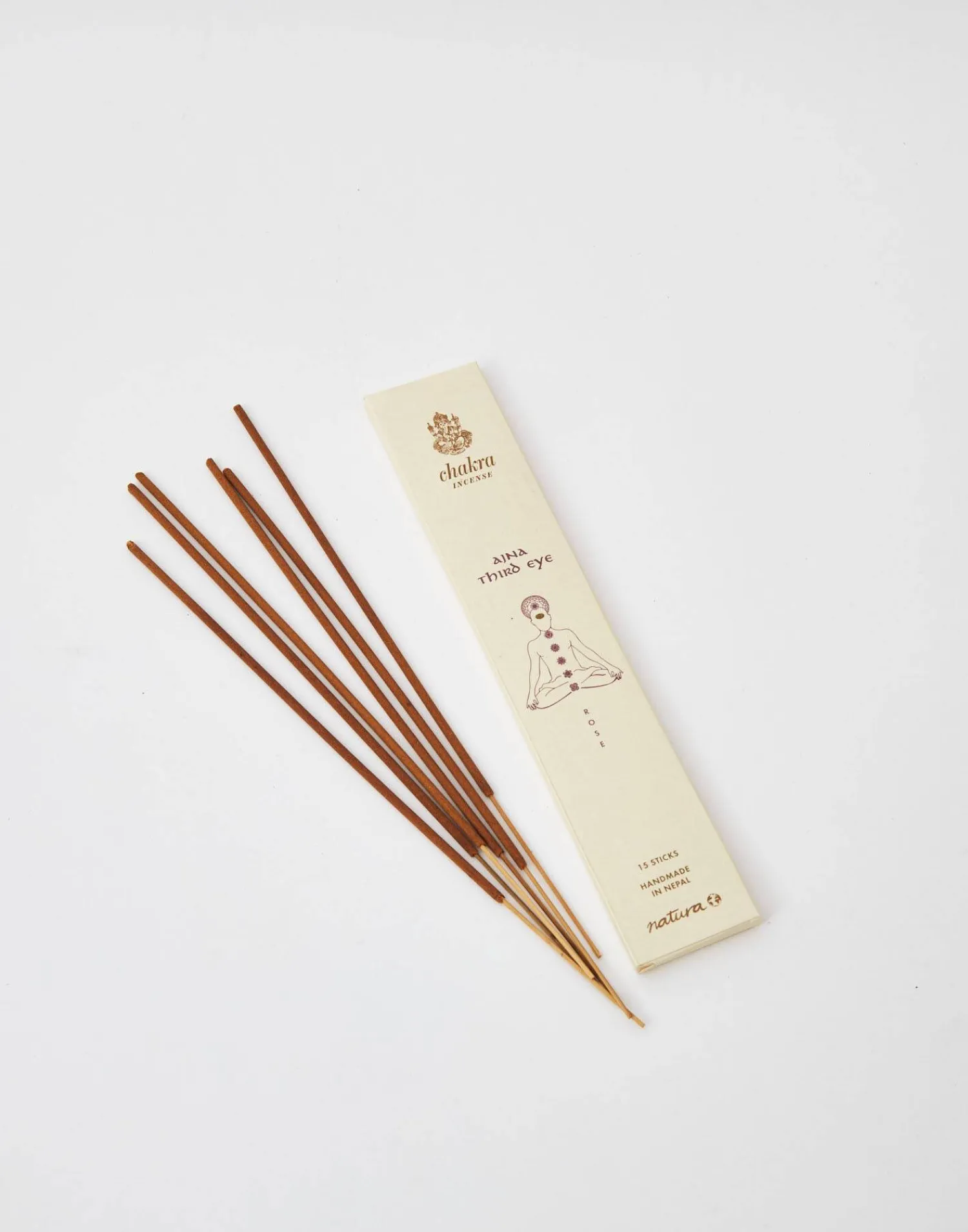 Colección de inciensos con 15 sticks, hechos a mano en Nepal. Cada chakra corresponde a un aroma determinado: