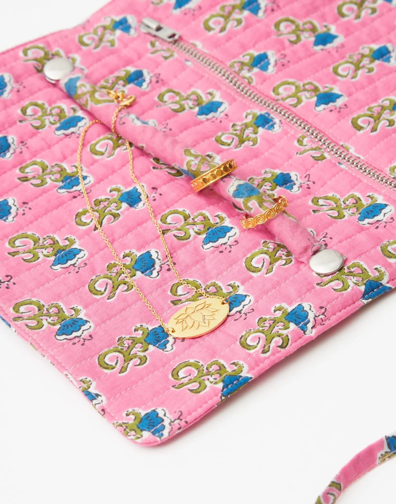 Joyero estampado de algodón para guardar de forma segura tus piezas de bisutería.