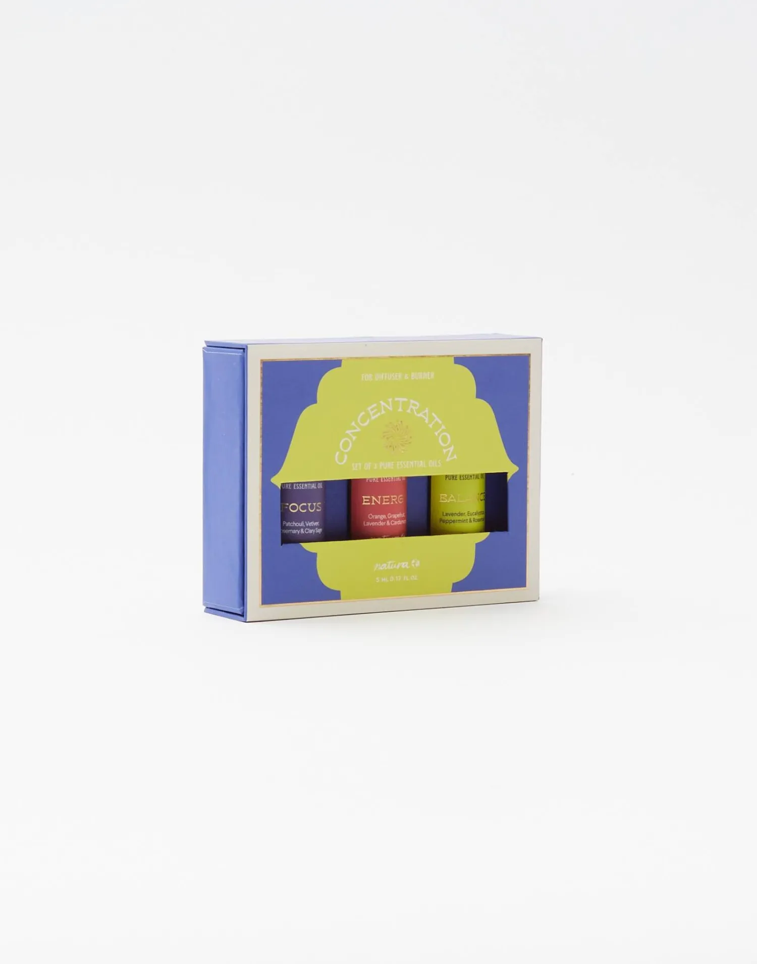 La colección de concentración contiene un conjunto de tres mezclas de aceites esenciales únicas que potencian los sentimientos de equilibrio y energía. El aroma exótico y fresco de los aceites calma los nervios, tranquiliza la mente y te transporta a un lugar de absoluta felicidad. Incluye los aromas Enfoque, Energía y Equilibrio.
