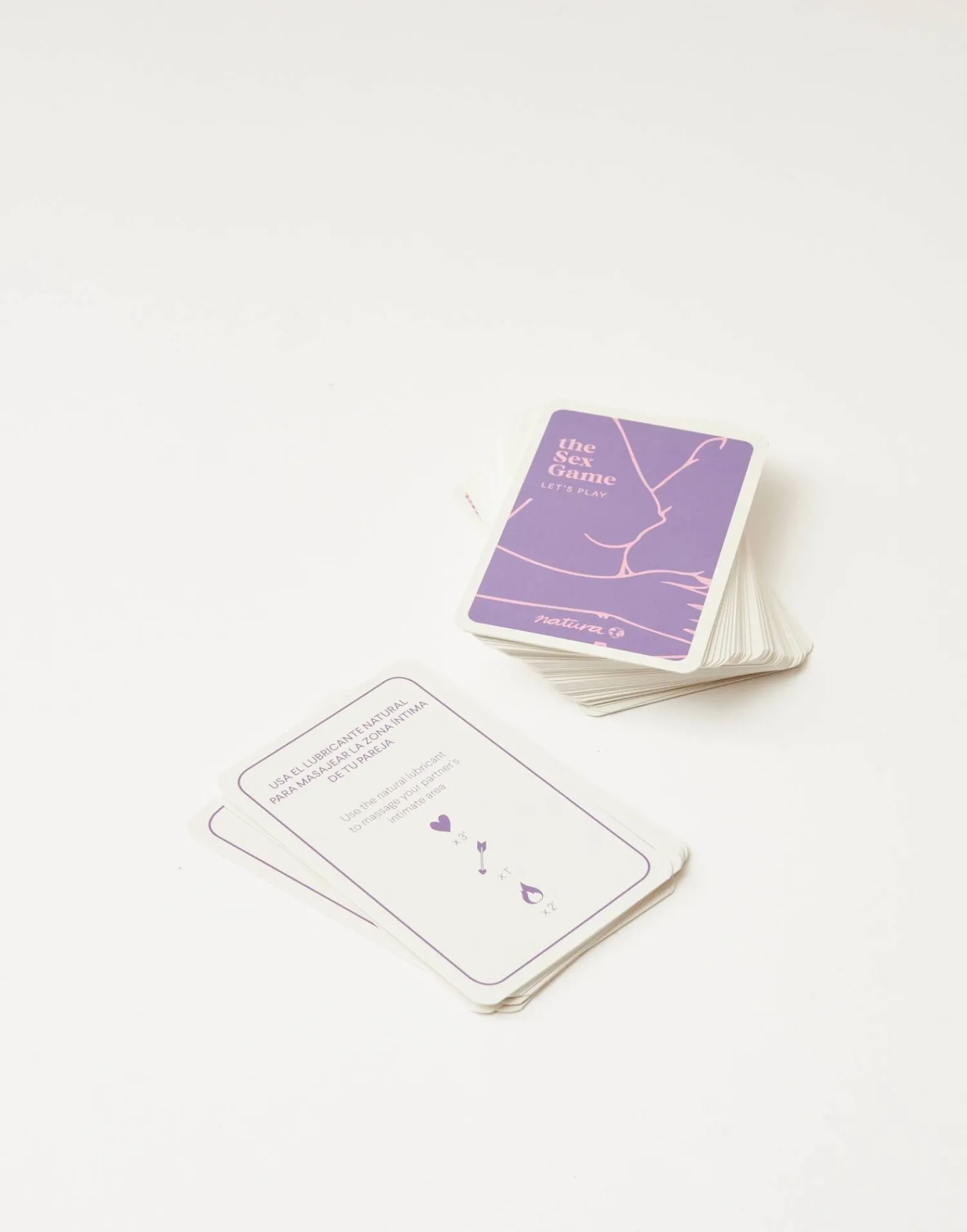 Contiene un juego de cartas con instrucciones y un lubricante natural hecho en España.