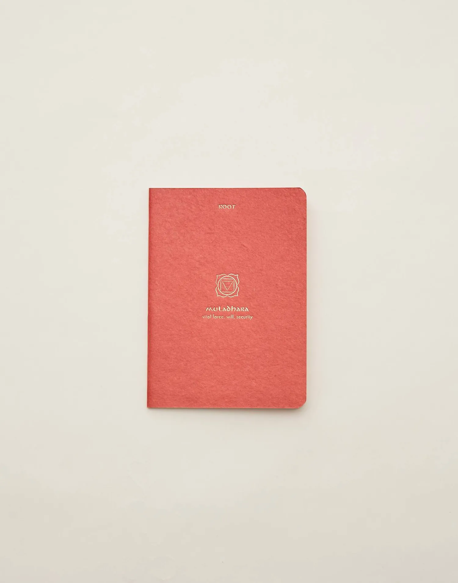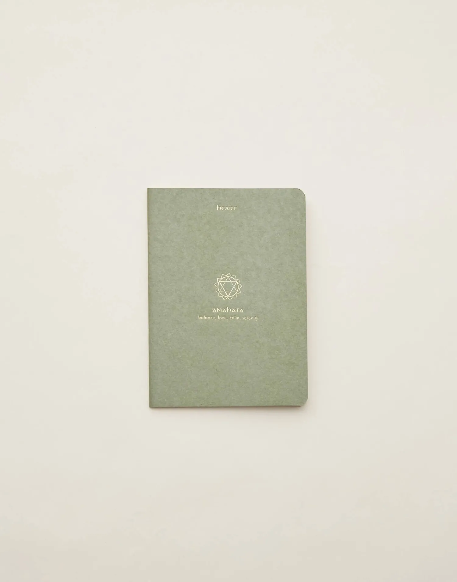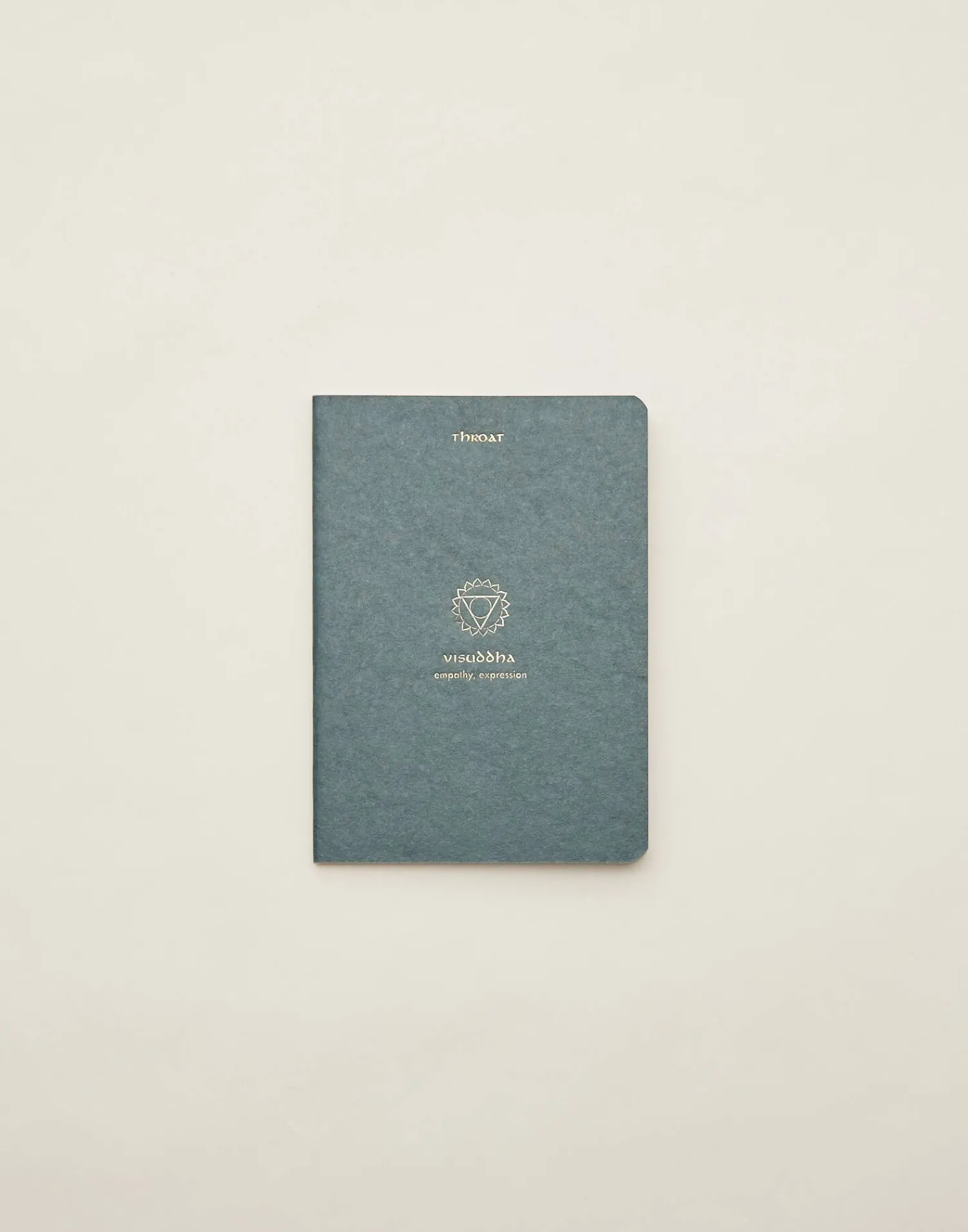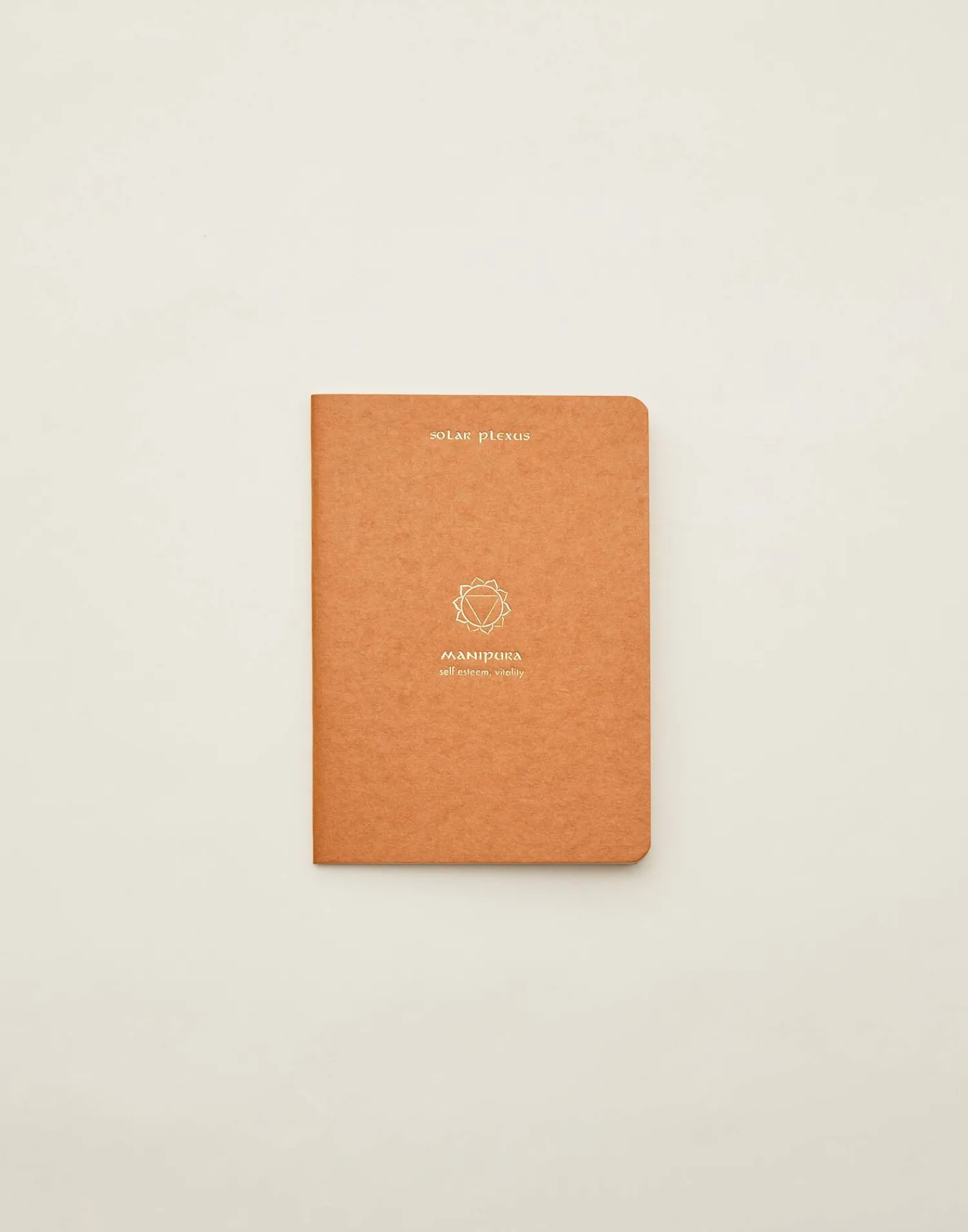 Cuaderno de tapa blanda con hojas en blanco y dibujo de chakra en la portada.