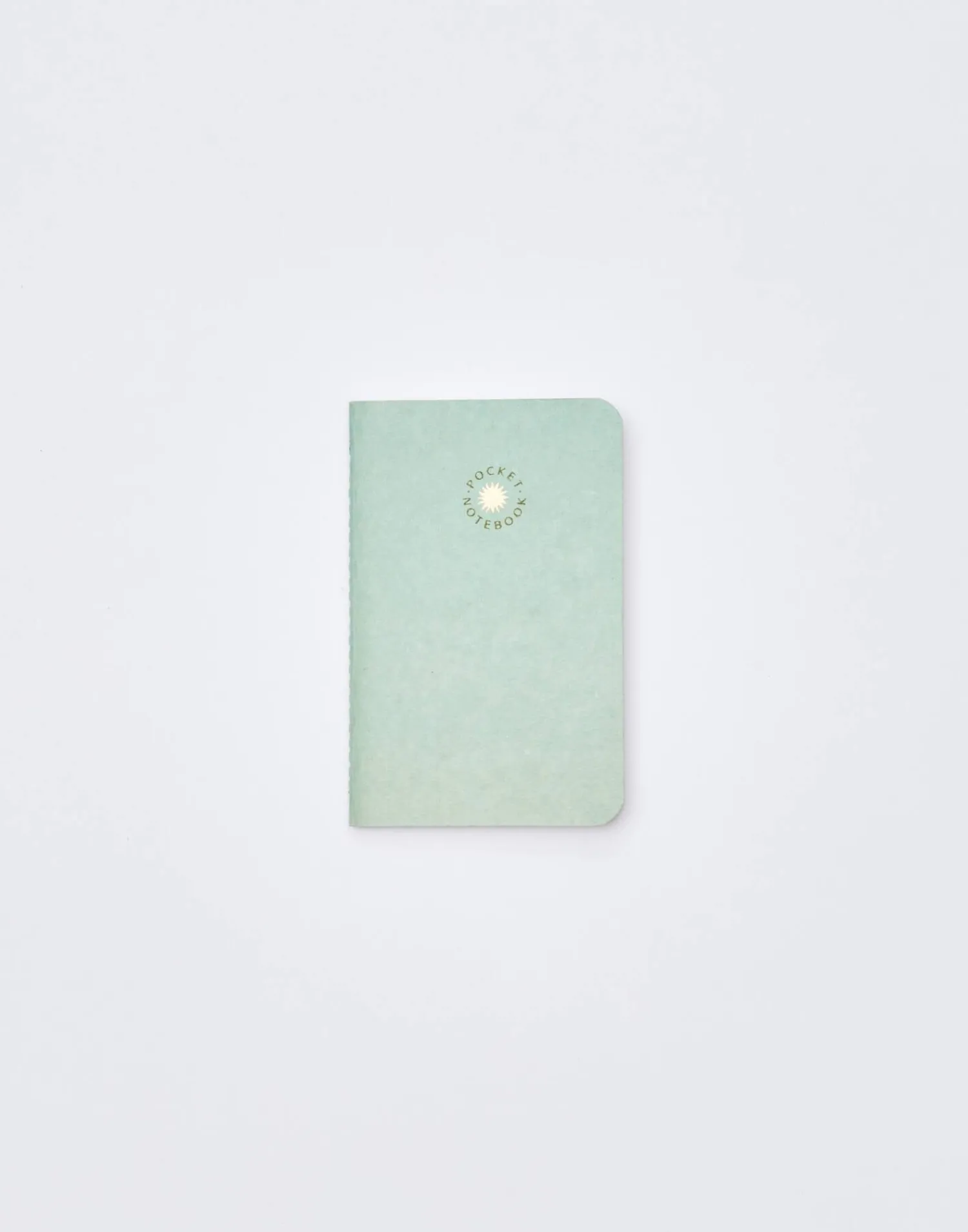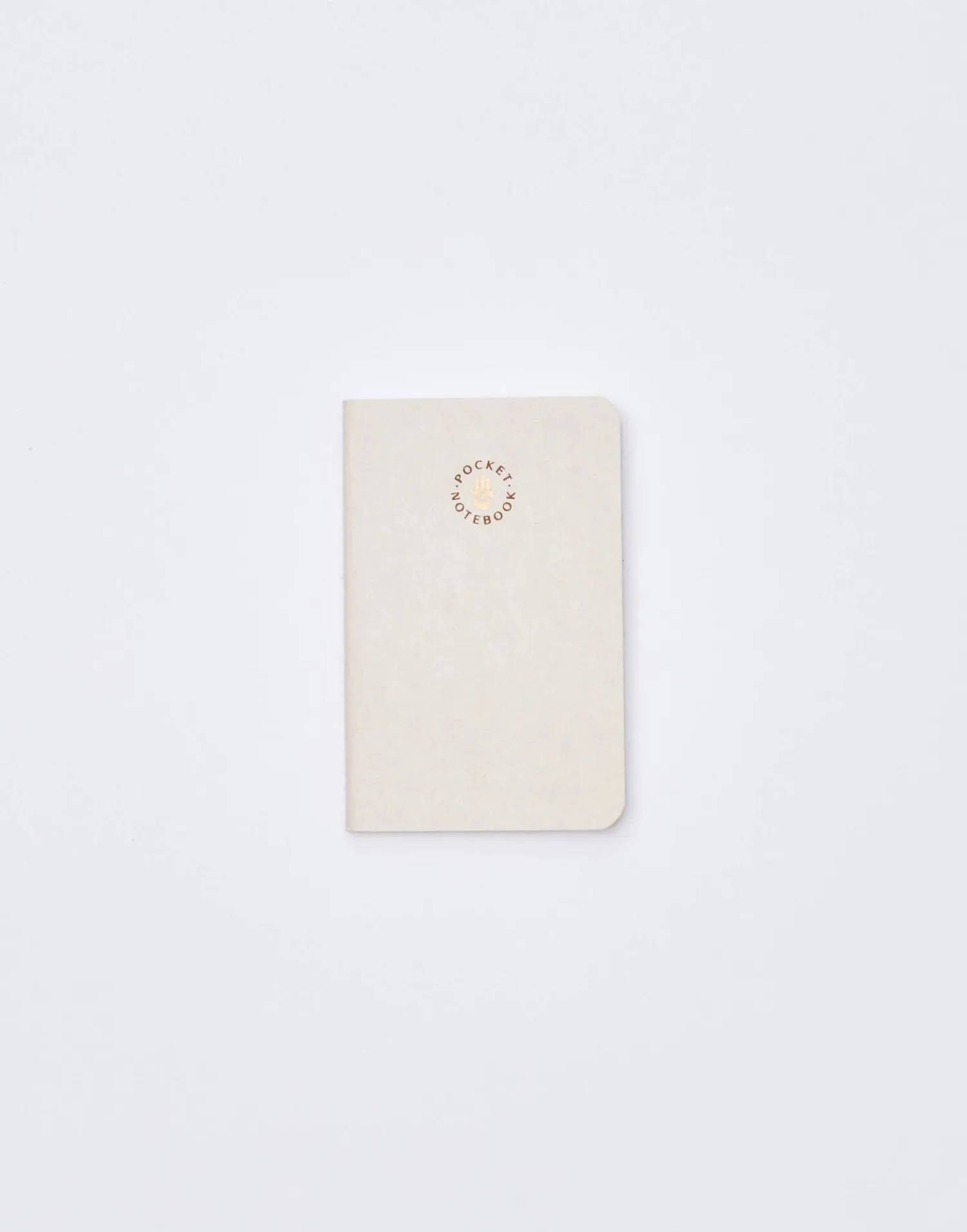 Libreta de formato pequeño con mensaje dorado en la parte frontal y tapa blanda. Páginas lisas.