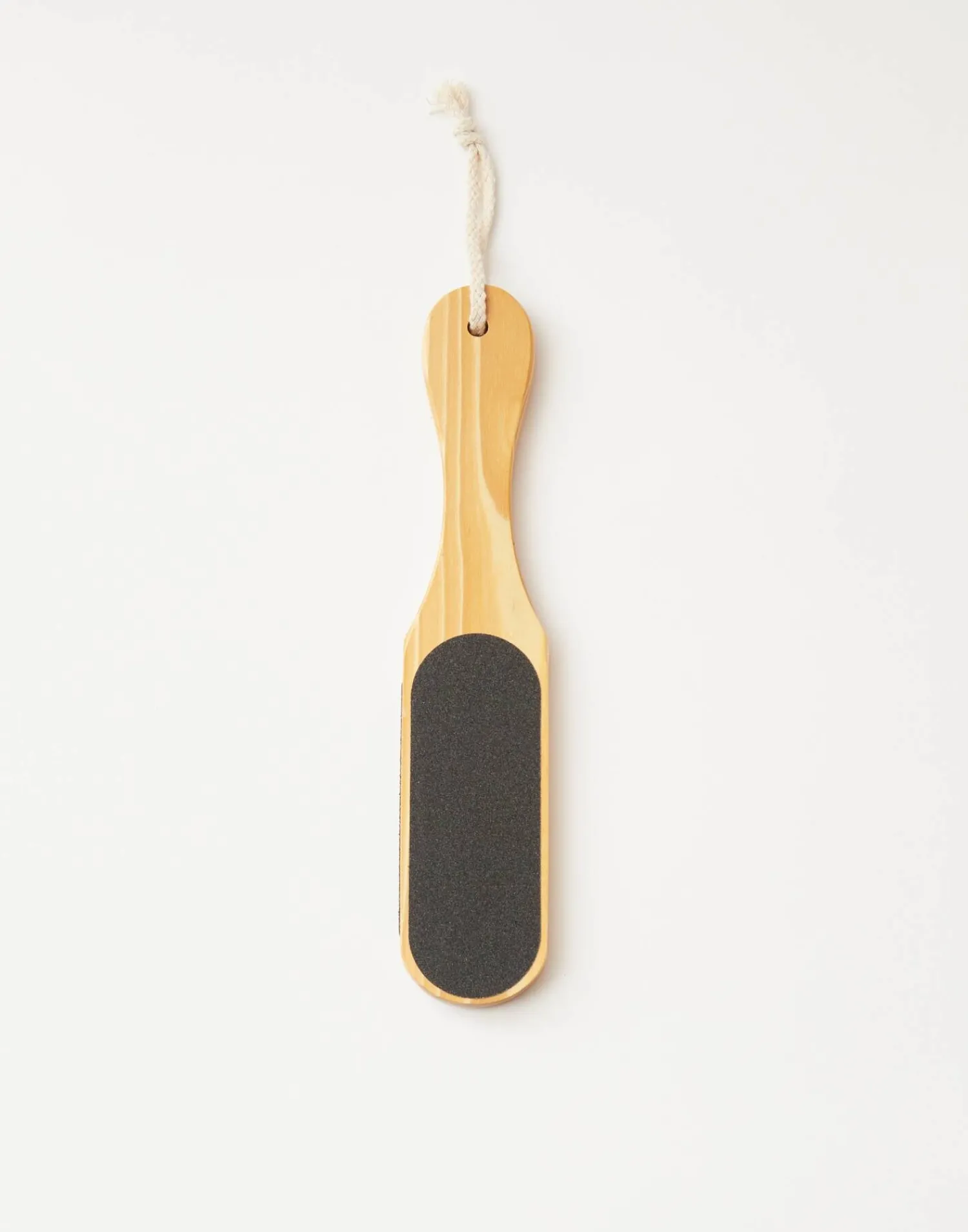Lima en madera de doble cara para eliminar piel muerta, durezas y callosidades de los pies. Incluye cordón para colgar.