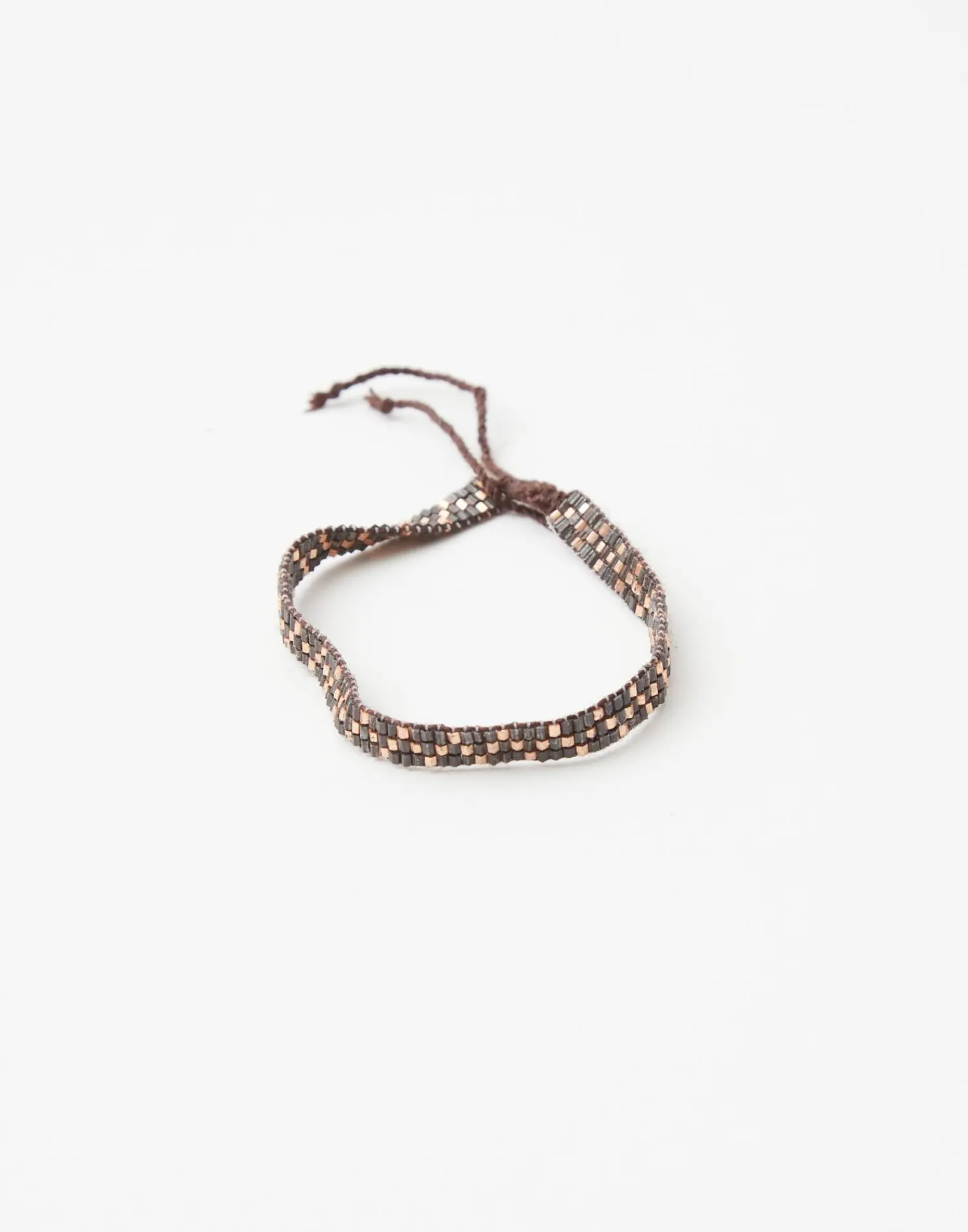Pack de 2 pulseras anchas con cuentas de colores formando un diseño geométrico. Cierre de nudo corredizo.
