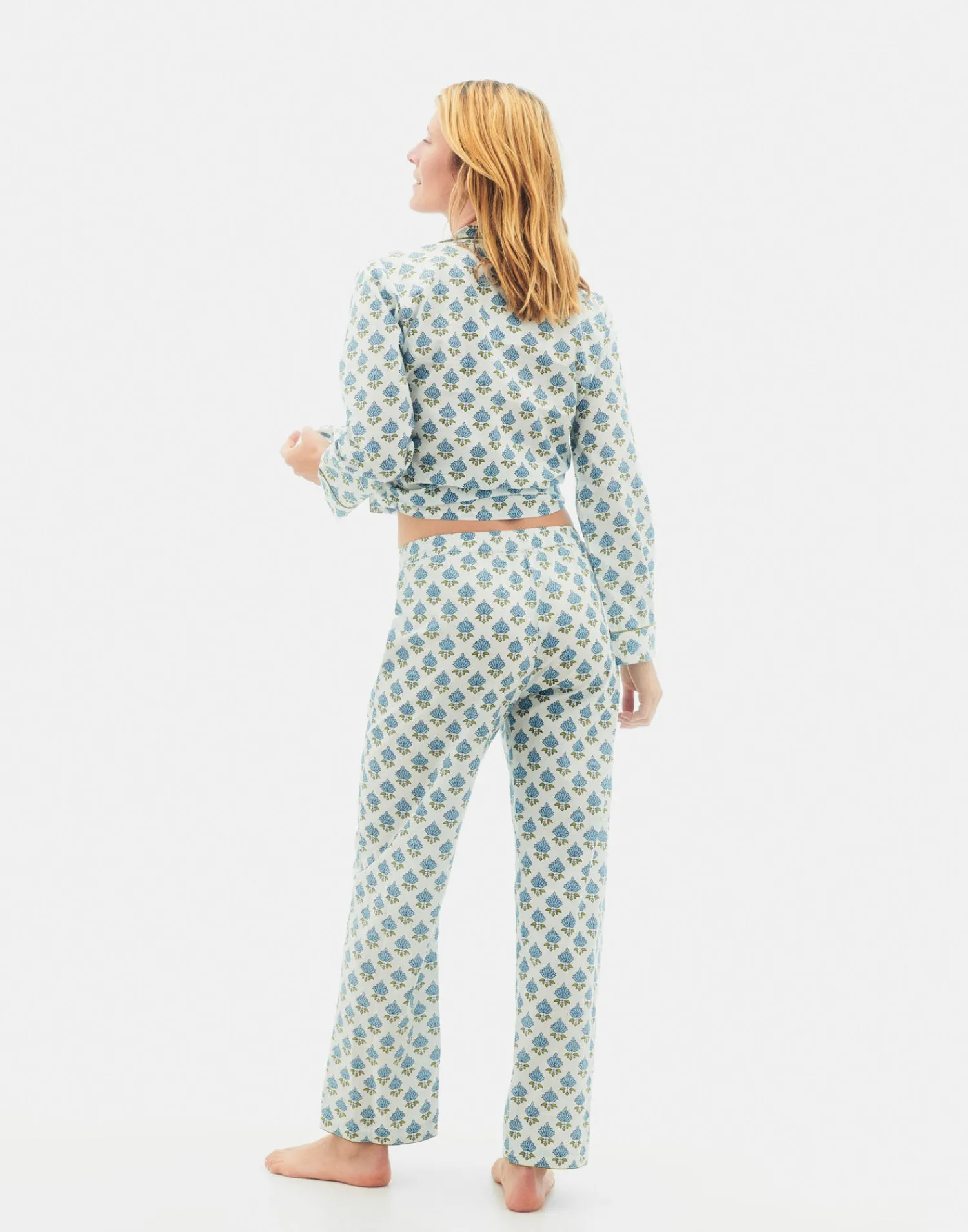 Set de pijama estampado compuesto por dos piezas: camisa de manga larga y pantalón largo.