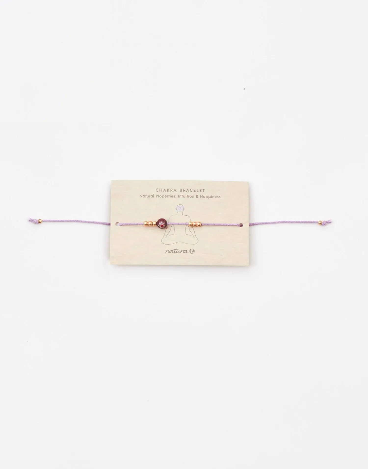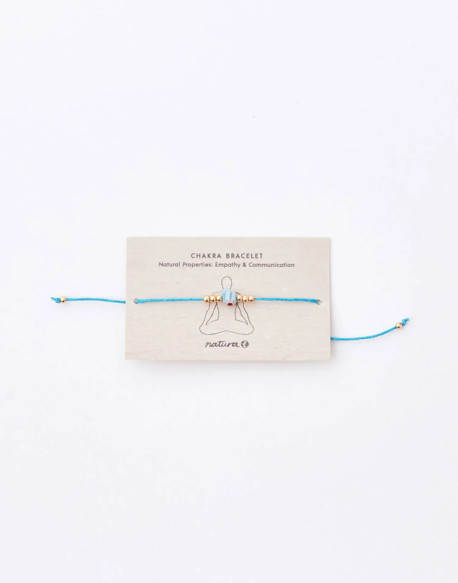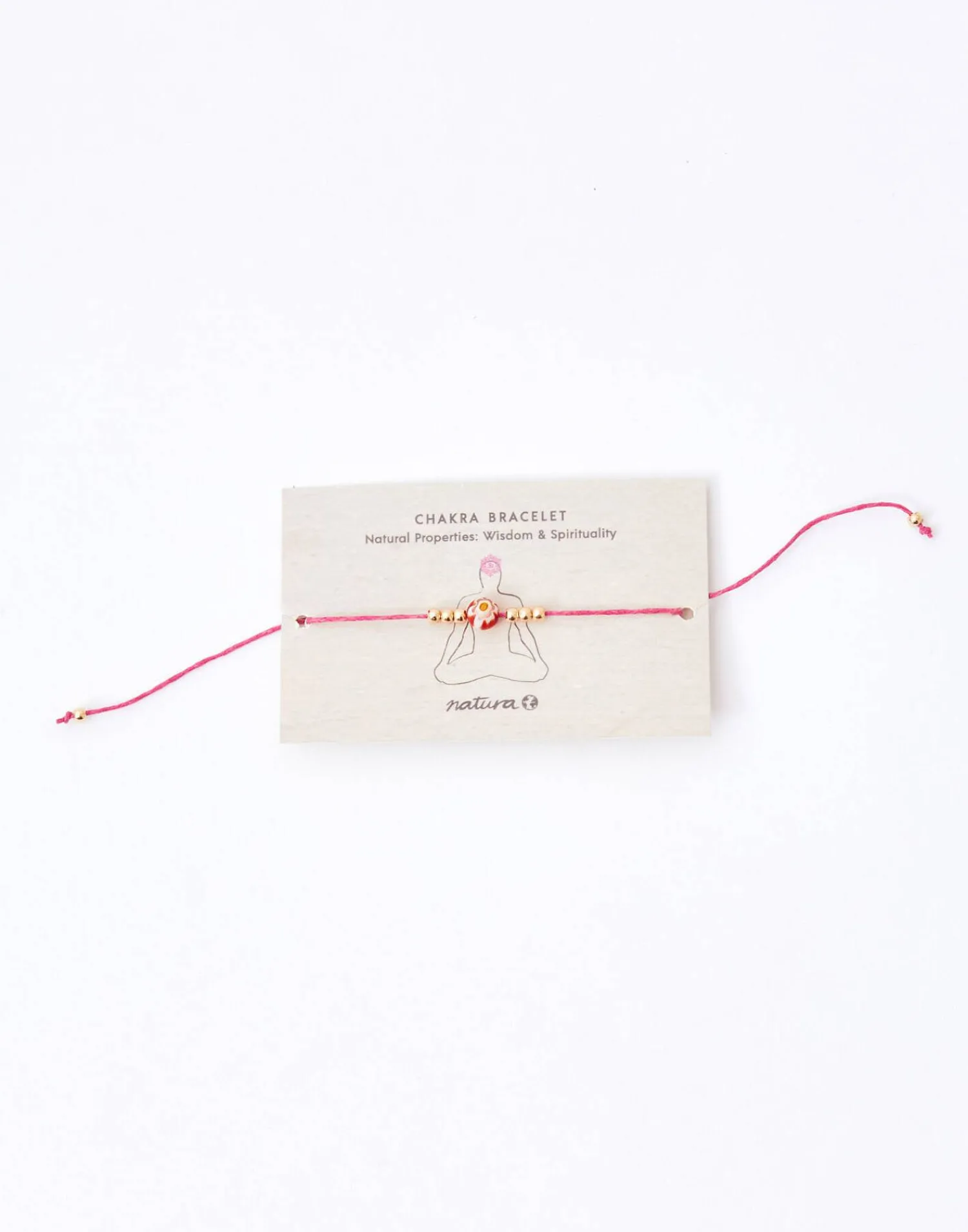 Pulsera de hilo con cuenta del color correspondiente a cada chakra y detalle de flor. Cierre de nudo corredizo.
