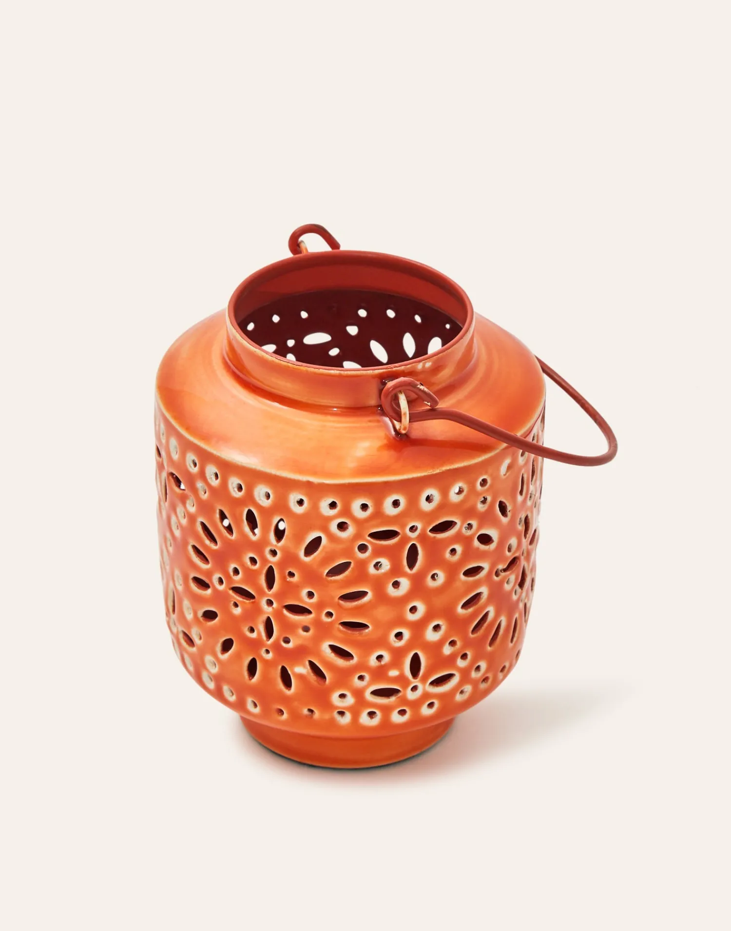 Farolillo de hierro troquelado para velas. Ideal para crear un ambiente acogedor y boho en tu hogar.