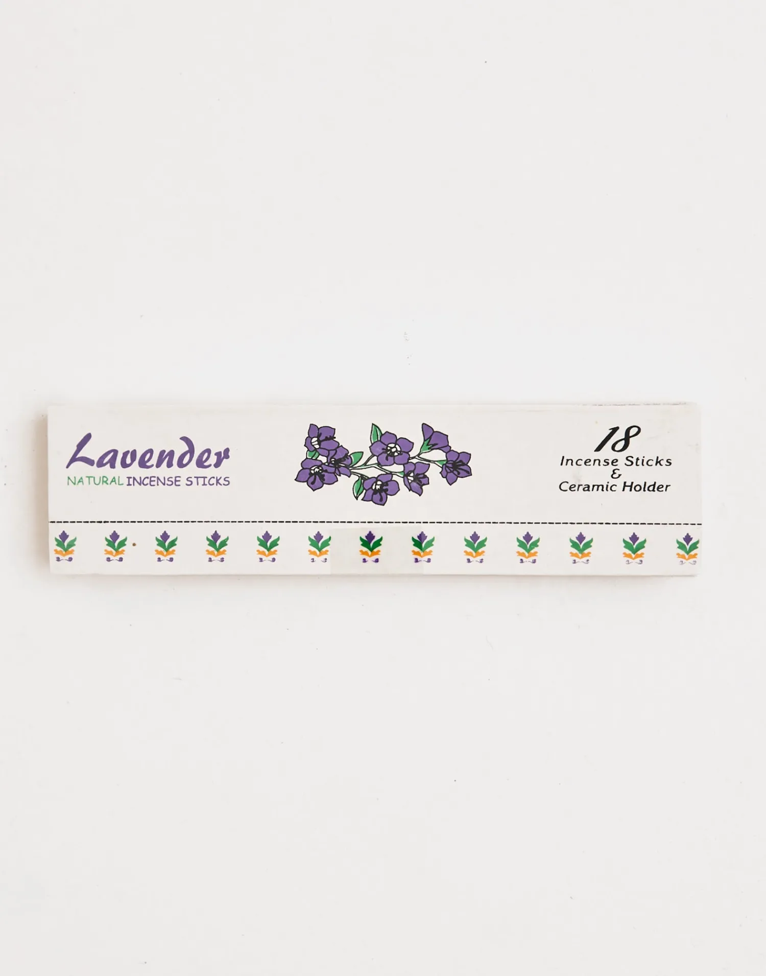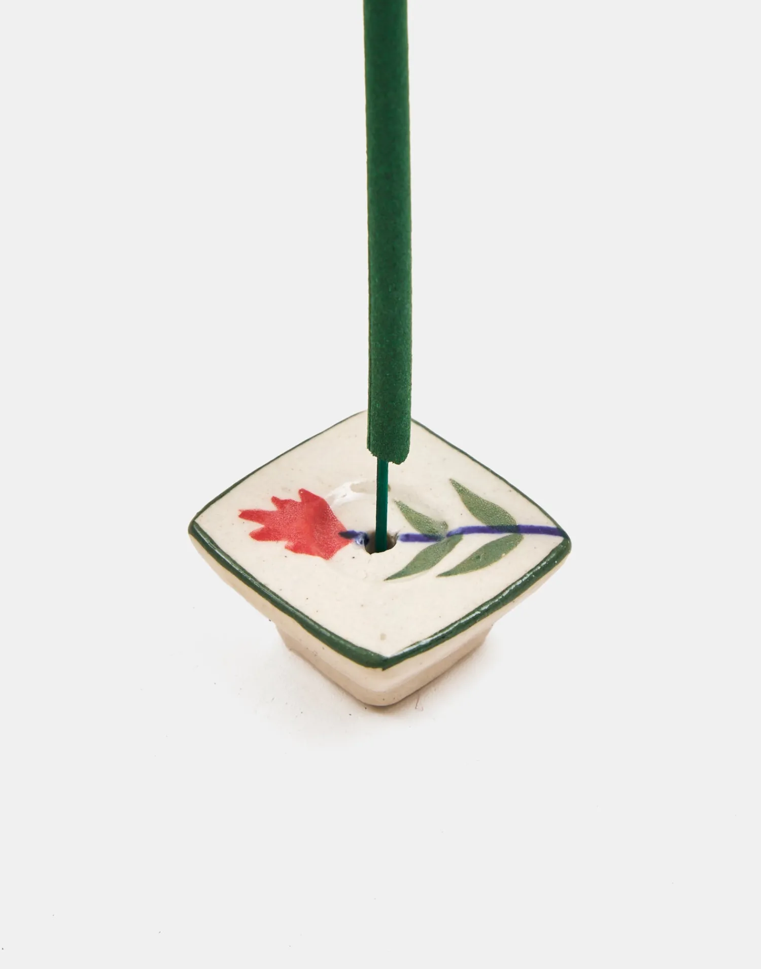 Caja con 18 inciensos en sticks y soporte de cerámica.