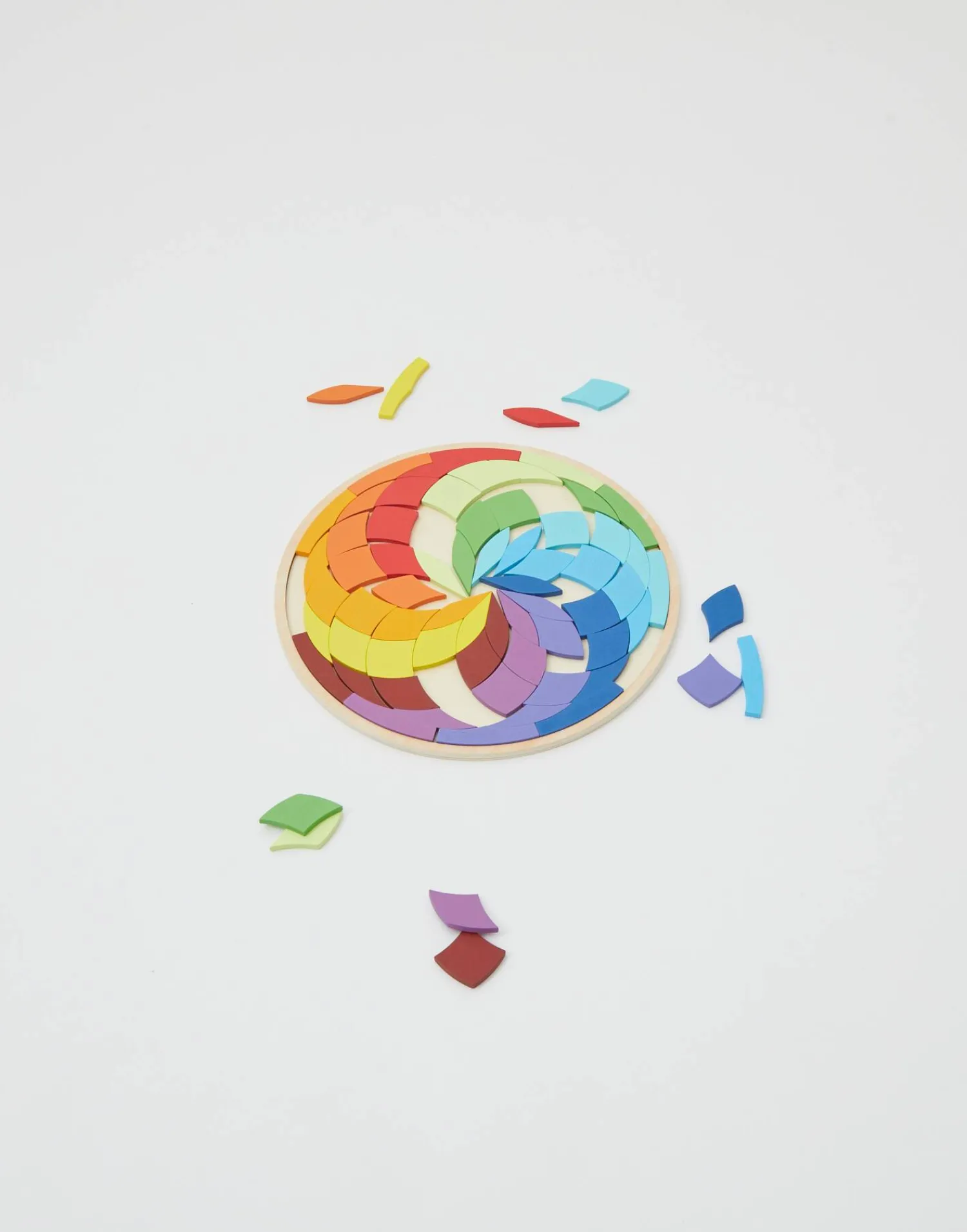 Juego de mesa tangram en formato redondo con el que promover la concentración y la creatividad.