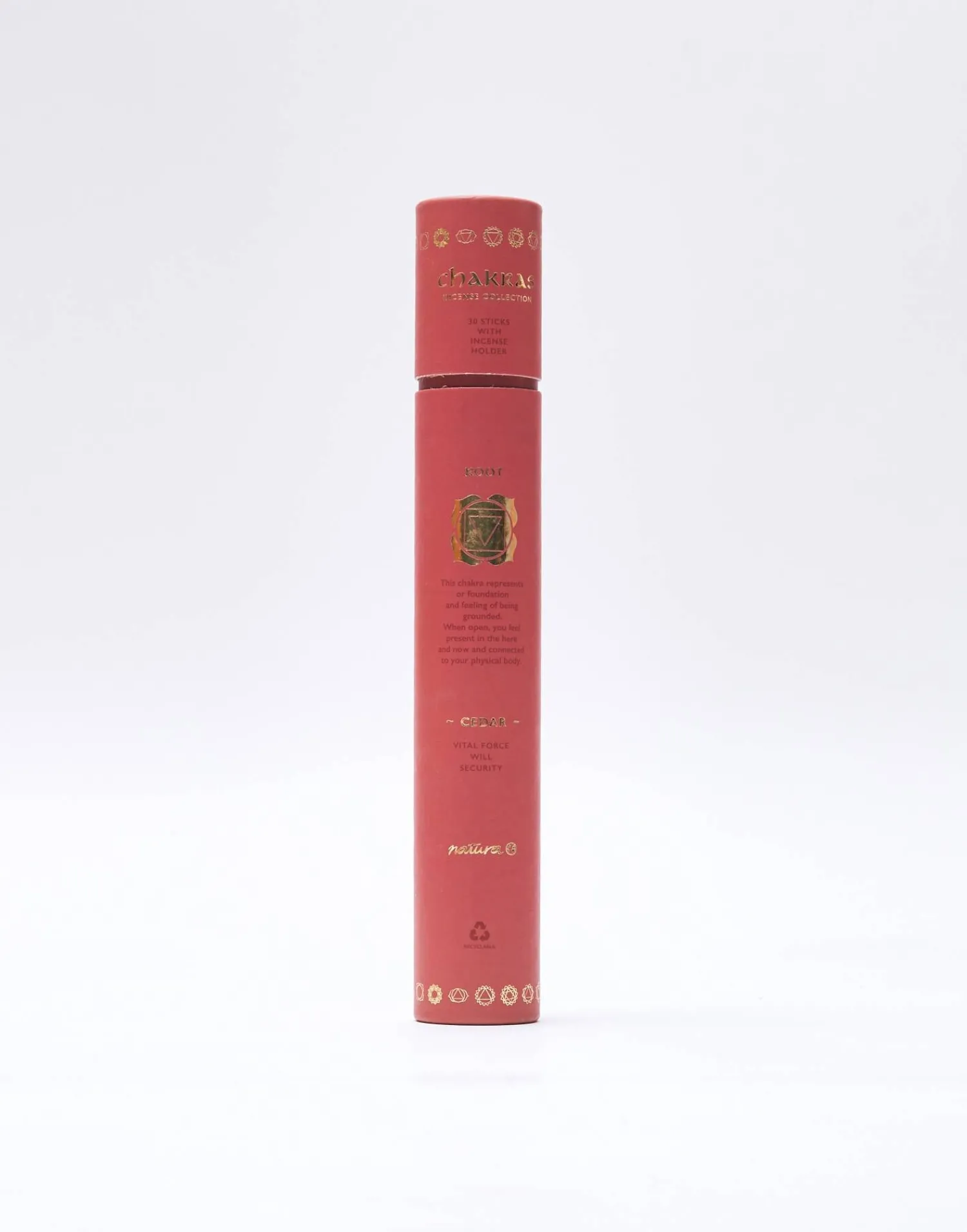 Raíz: cedro (rojo). Este chakra representa tu fundamento y sensación de estar enraizado/a.