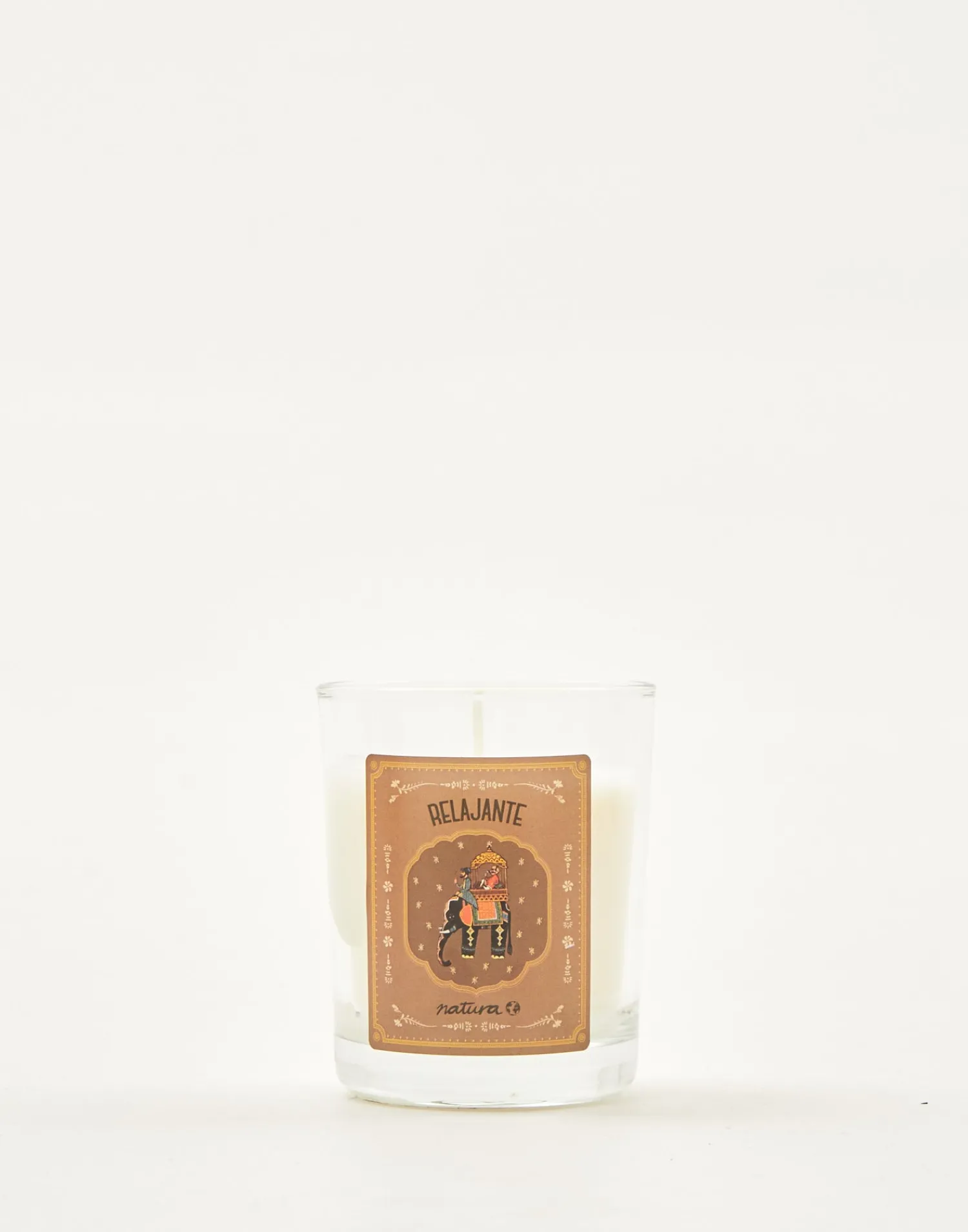 Vela de soja con mecha de algodón y recipiente de cristal. Fabricada en España.