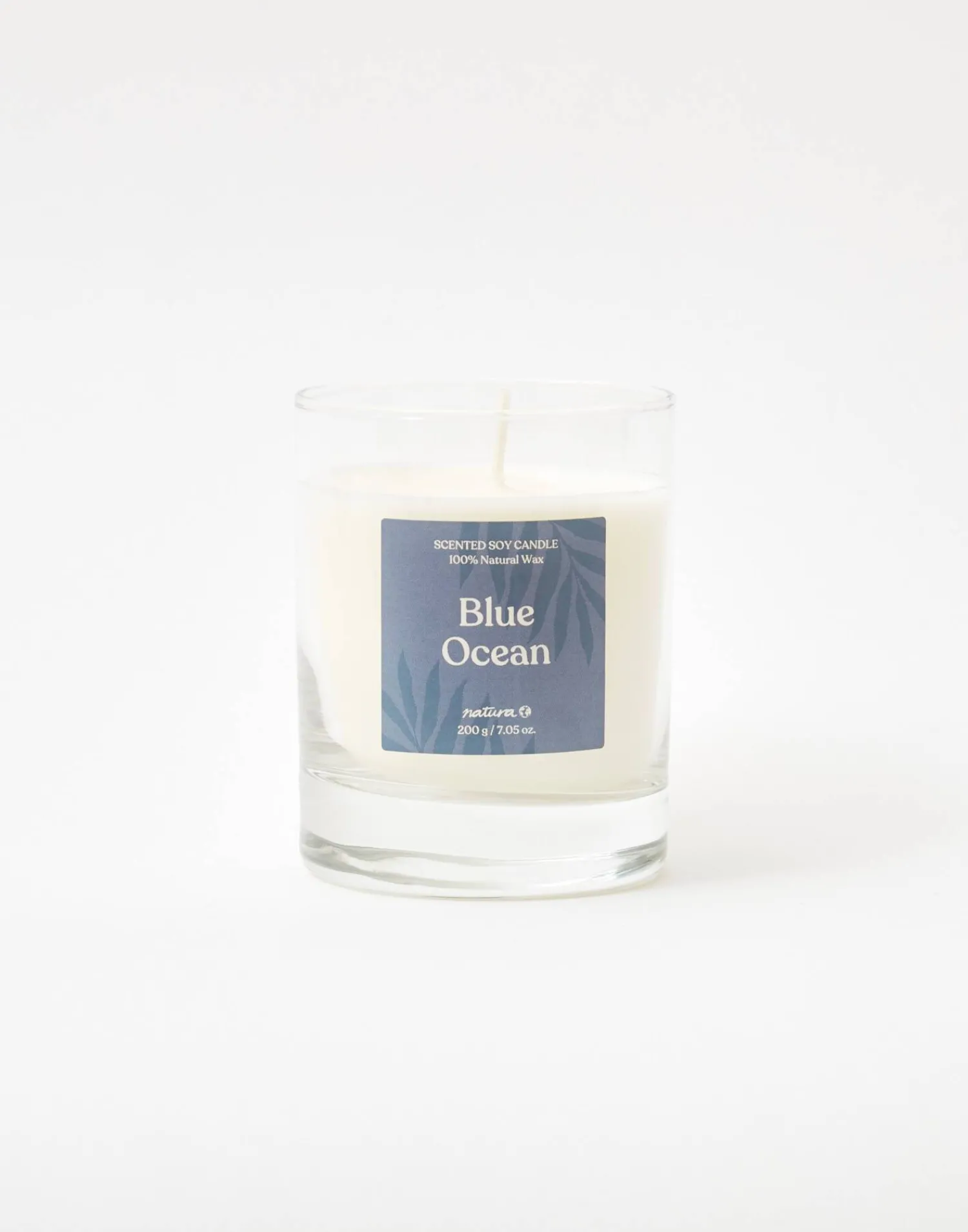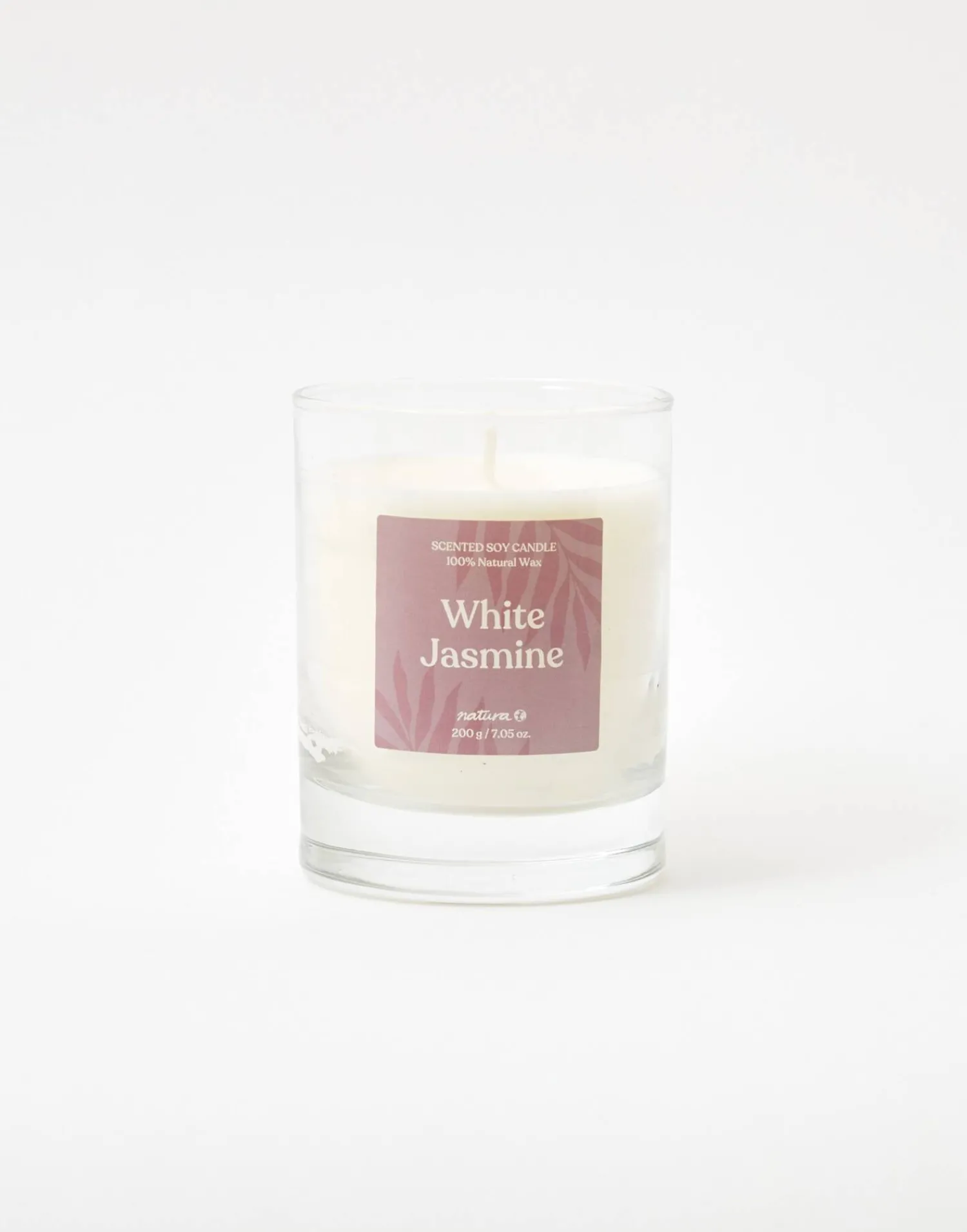 Vela aromática de cera vegetal, con mecha de algodón y tarro de cristal.
