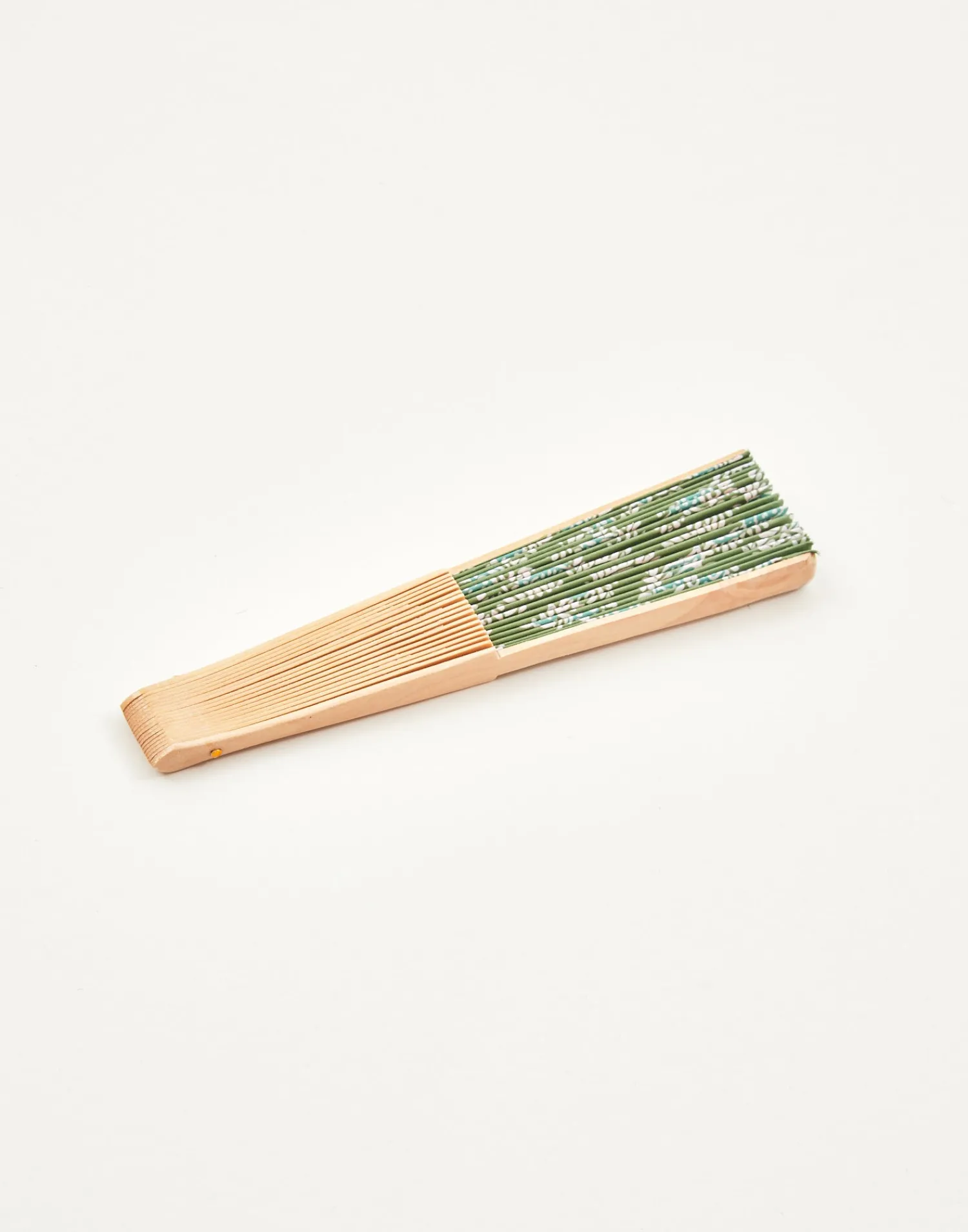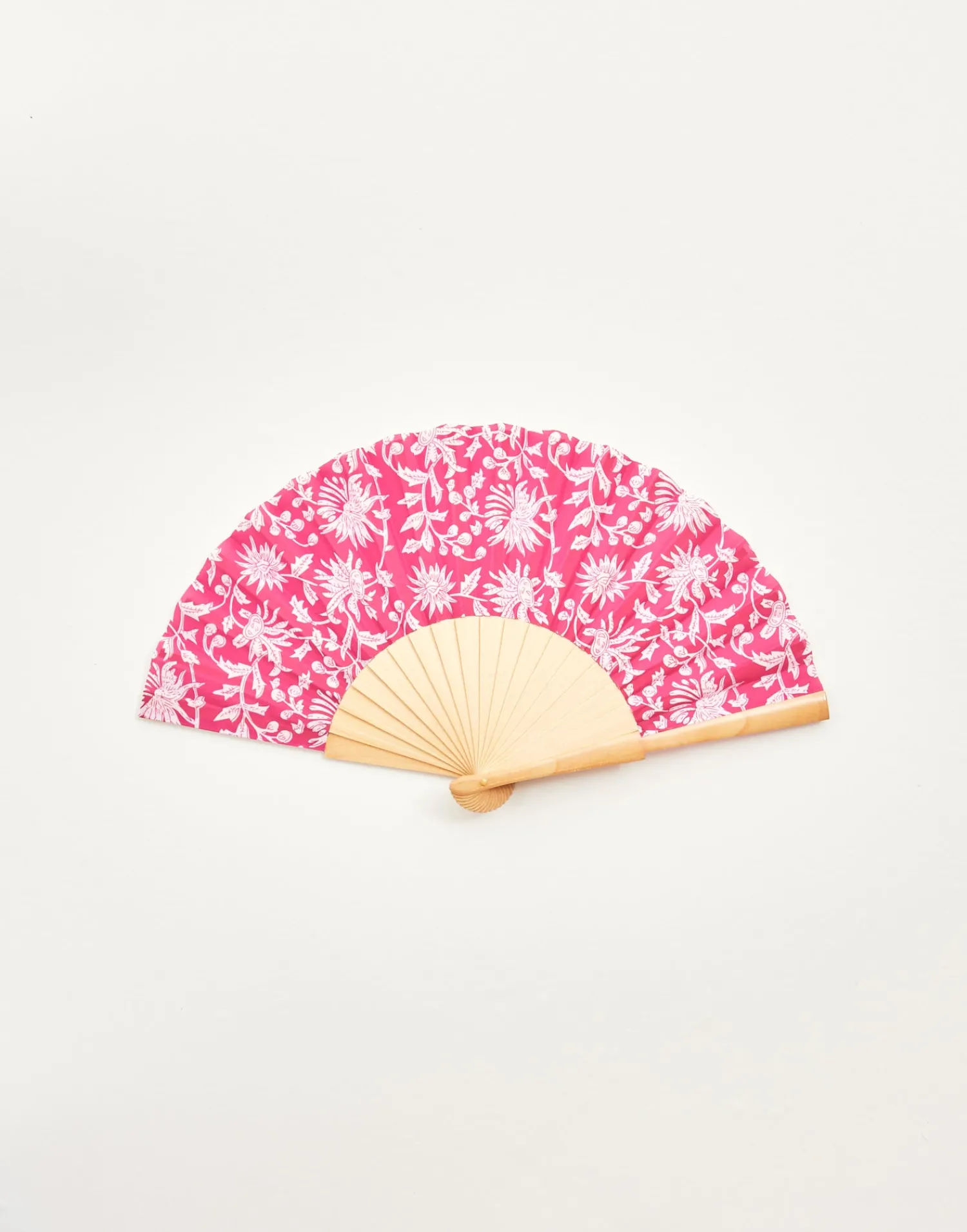 Abanico de madera con tela estampada.