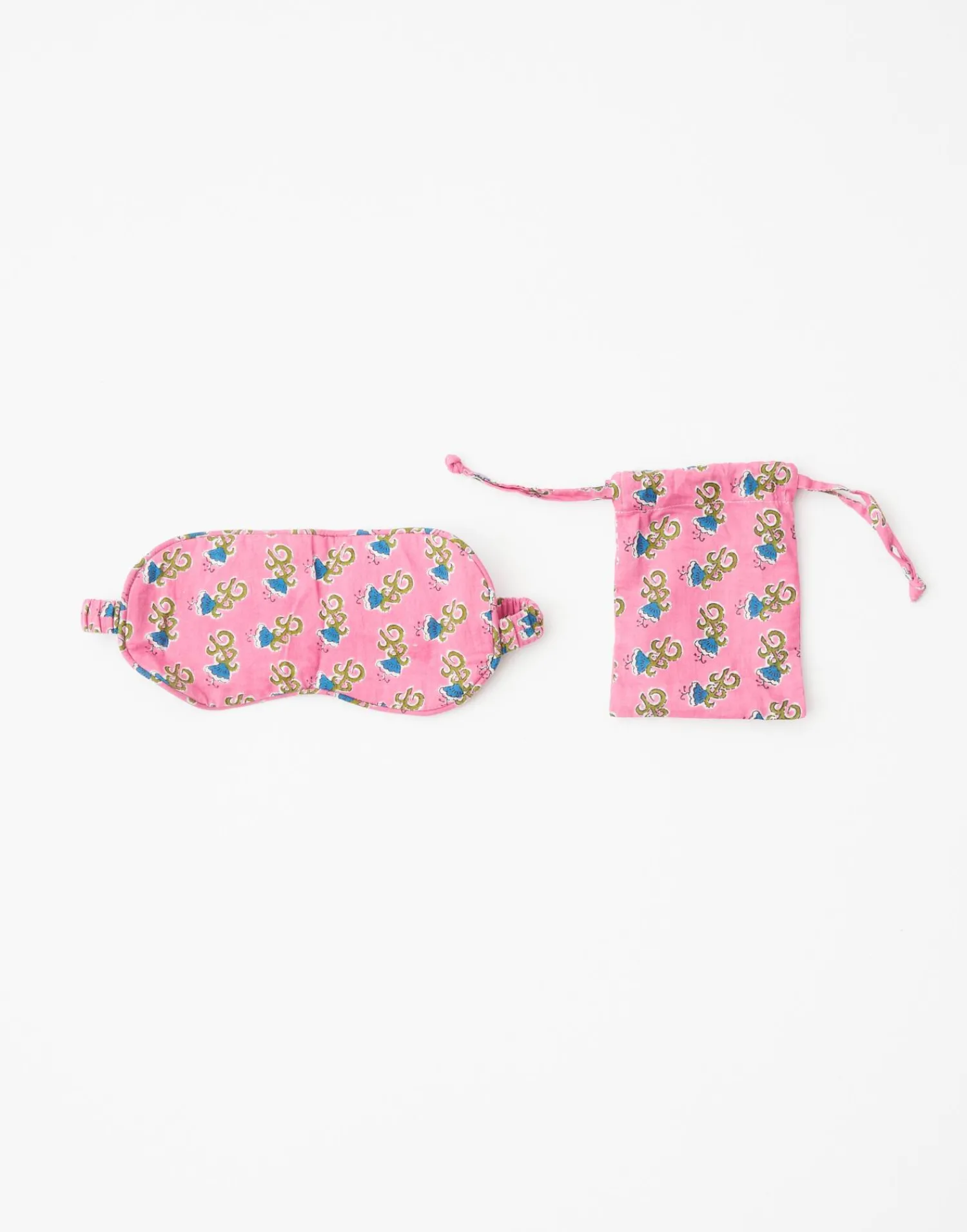 Antifaz estampado con cinta elástica. Viene en una bolsita con estampado a juego.