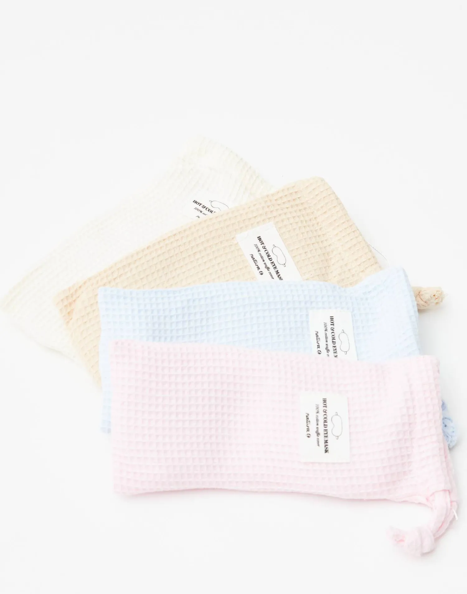 Antifaz de gel para terapia en frío o en caliente con funda de algodón y bolsa a juego. Ideal para relajar los músculos faciales o para dolores de cabeza.