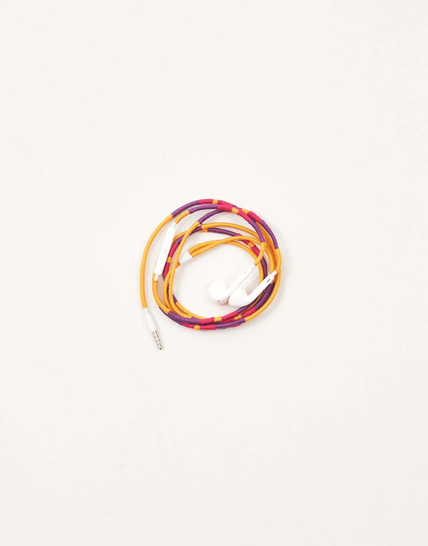 Auriculares con cable cubierto de tela trenzada para prevenir enredos y protegerlo de grietas, roturas y sudor. Micrófono y control de volumen incluídos, además de función de coger y colgar llamadas, saltar y pausar música o vídeo.