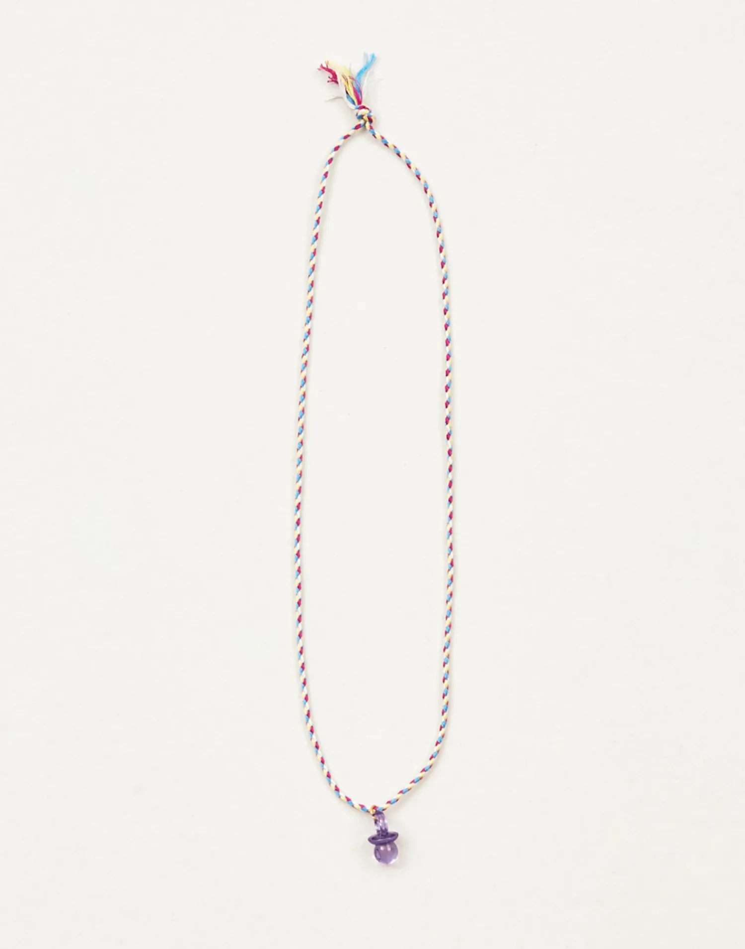 Collar largo de algodón con colgante en forma de chupete. Vuelve a los 90 con los icónicos chupetes de la suerte.