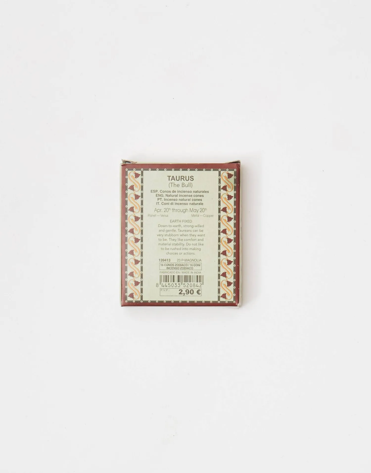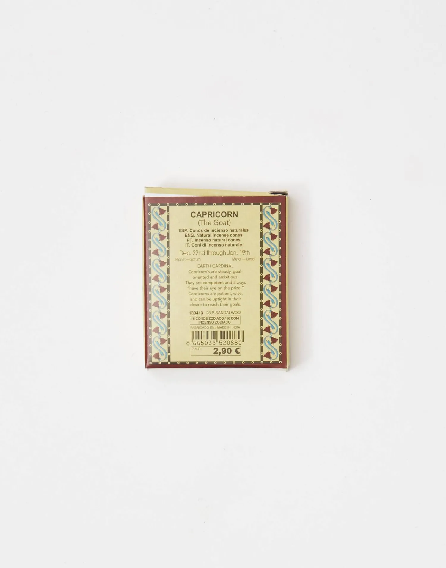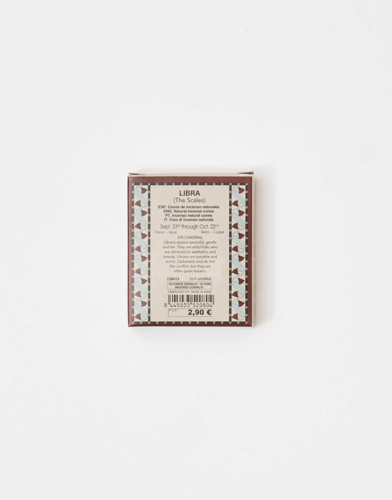 Este incienso hecho artesanalmente en la India está basado en los signos zodiacales y se elabora a partir de raíces aromáticas, resinas, hierbas, aceites florales naturales y polvo de madera. Esta formulación milenaria produce un aroma místico ideal para orar, reducir los malos olores y crear un ambiente fresco, agradable y tranquilo. Contiene 16 conos.
