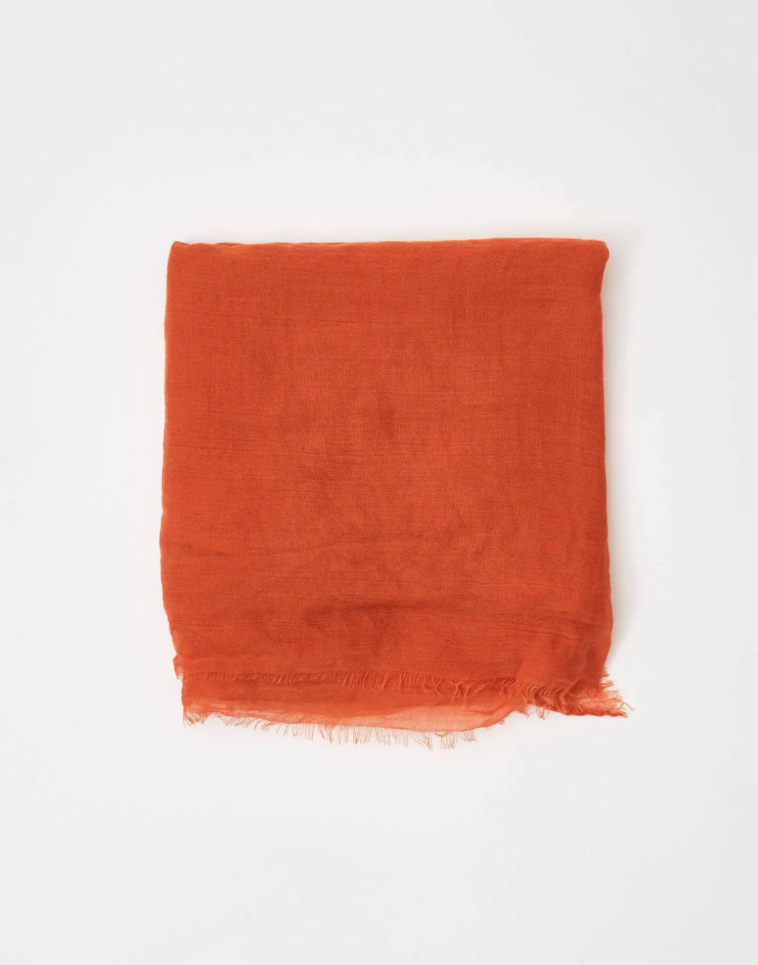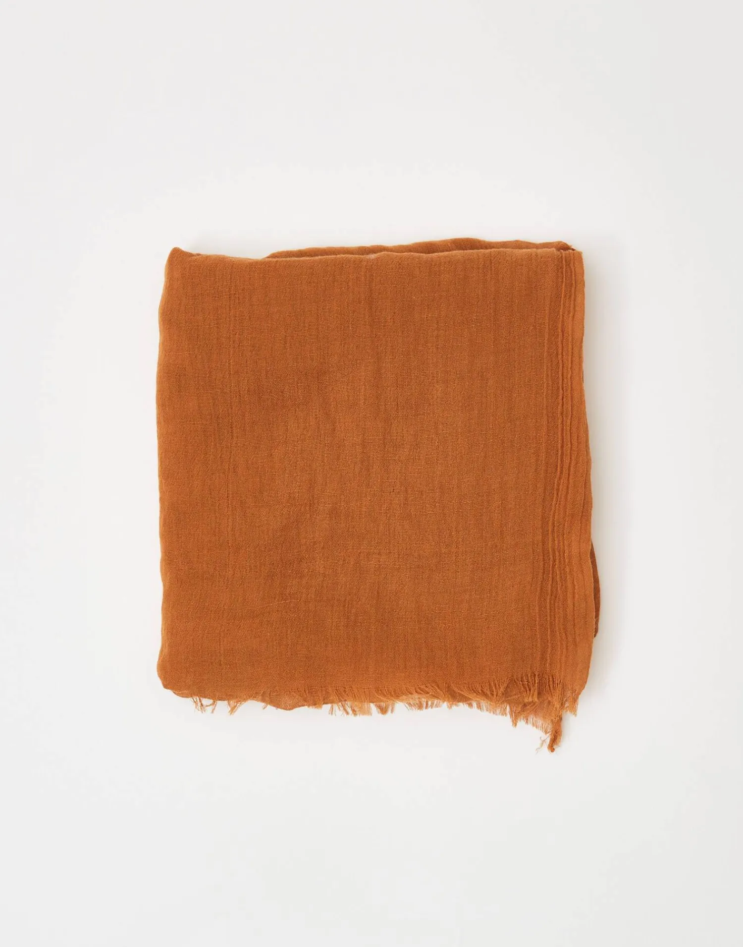 Pañuelo liso de tejido suave y terminaciones deshilachadas.