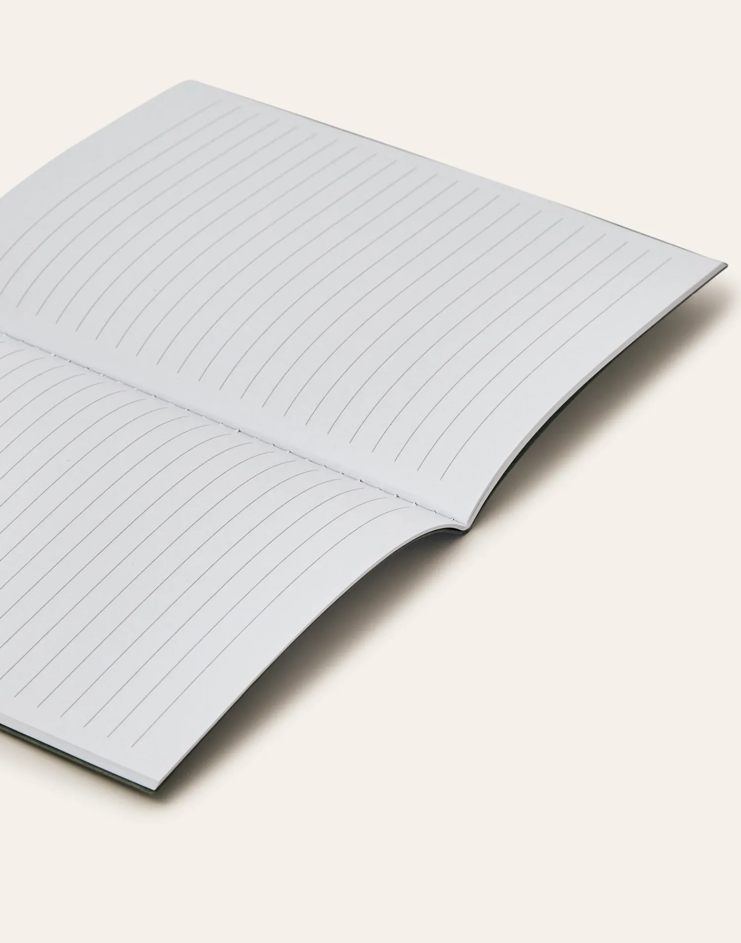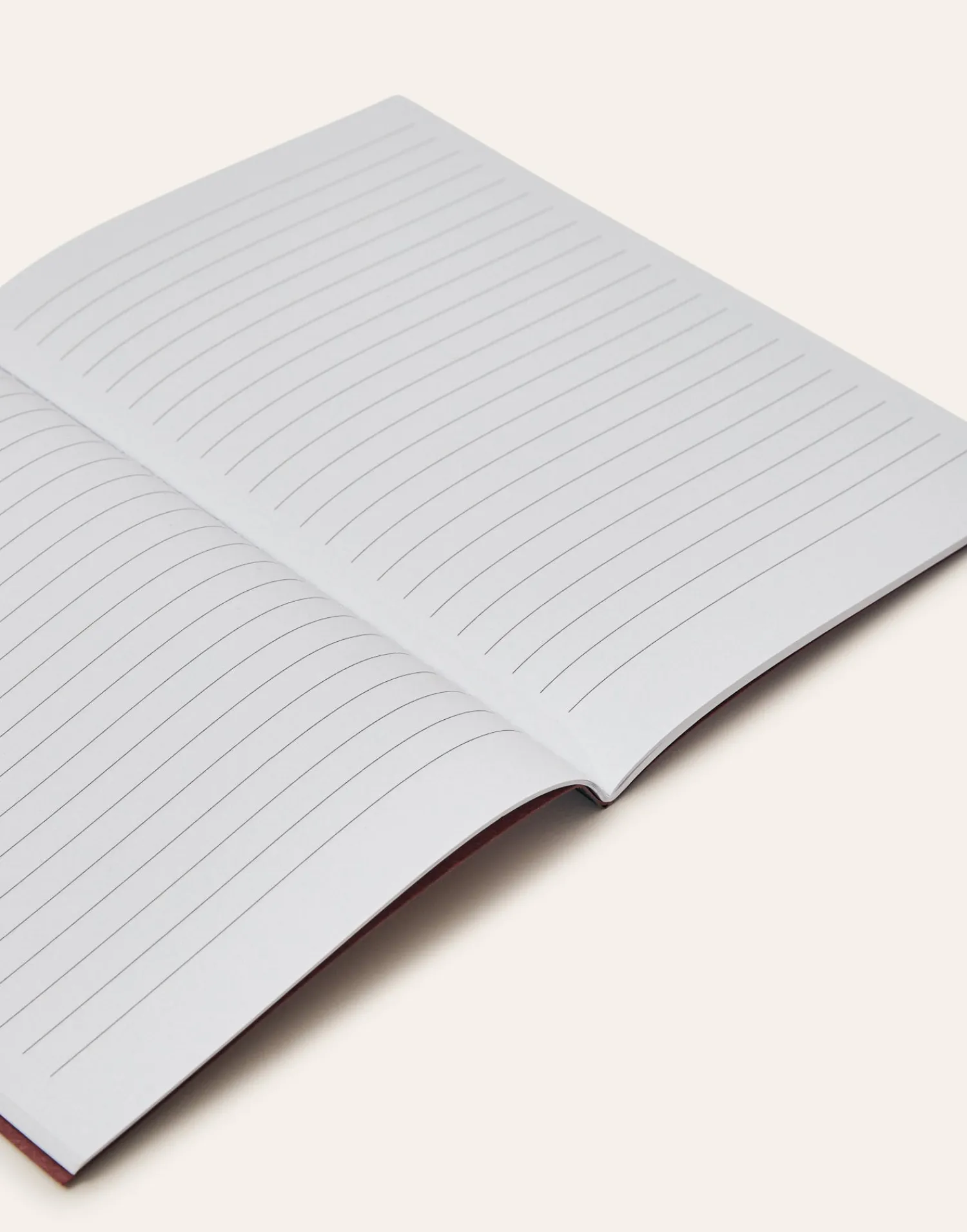 Libreta de tapa blanda con interior de páginas blancas a rayas.
