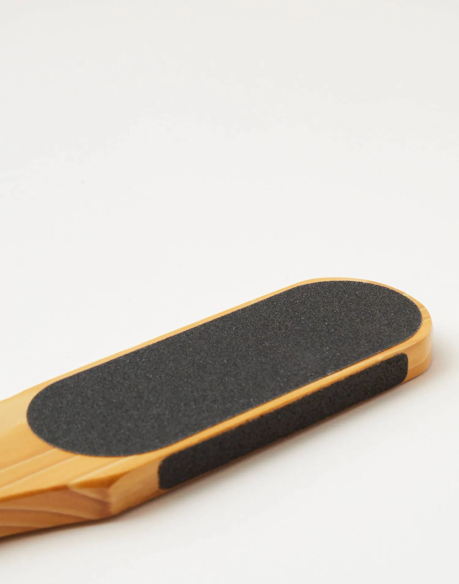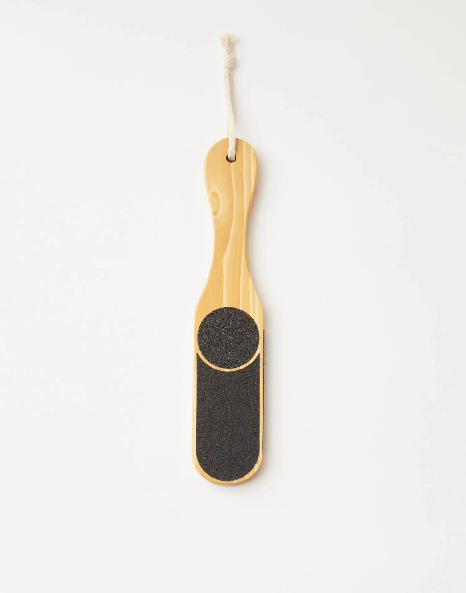 Lima en madera de doble cara para eliminar piel muerta, durezas y callosidades de los pies. Incluye cordón para colgar.