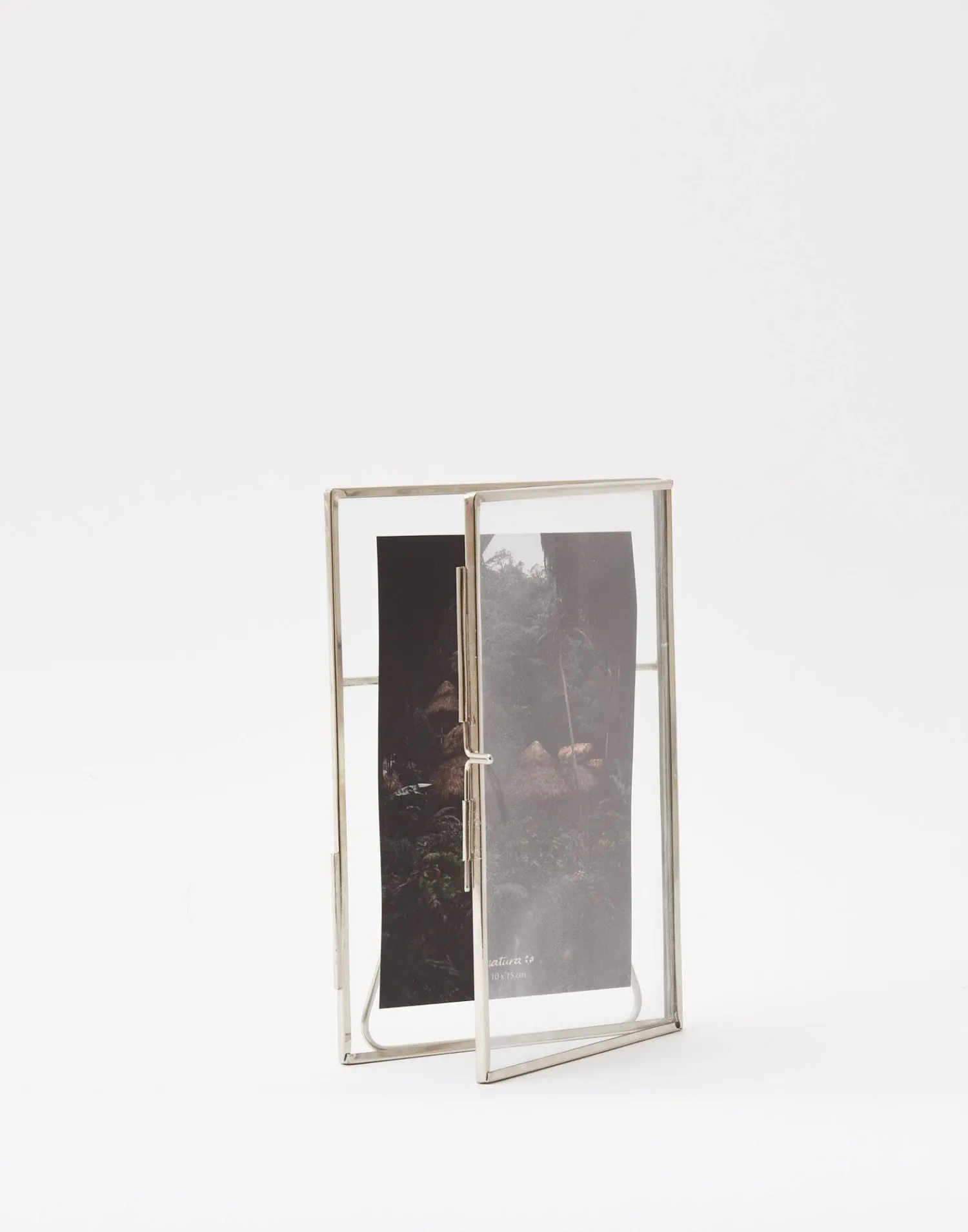 Marco de acero con pie en la parte trasera. Para fotos de 13×18 cm o de menor tamaño.