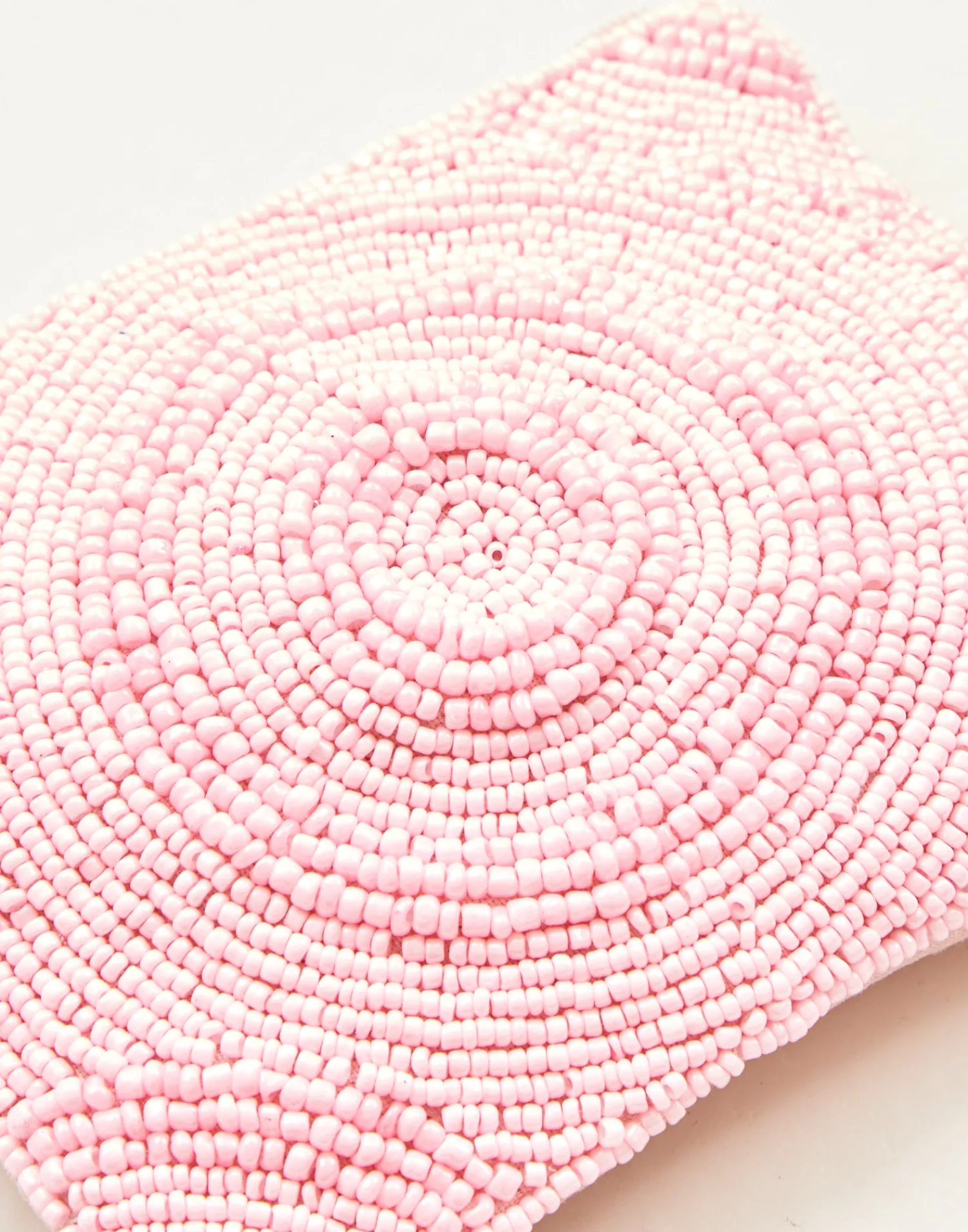 Pequeño neceser portatodo con cierre de cremallera superior. Parte frontal decorada con ilustraciones hechas con cuentas de vidrio.