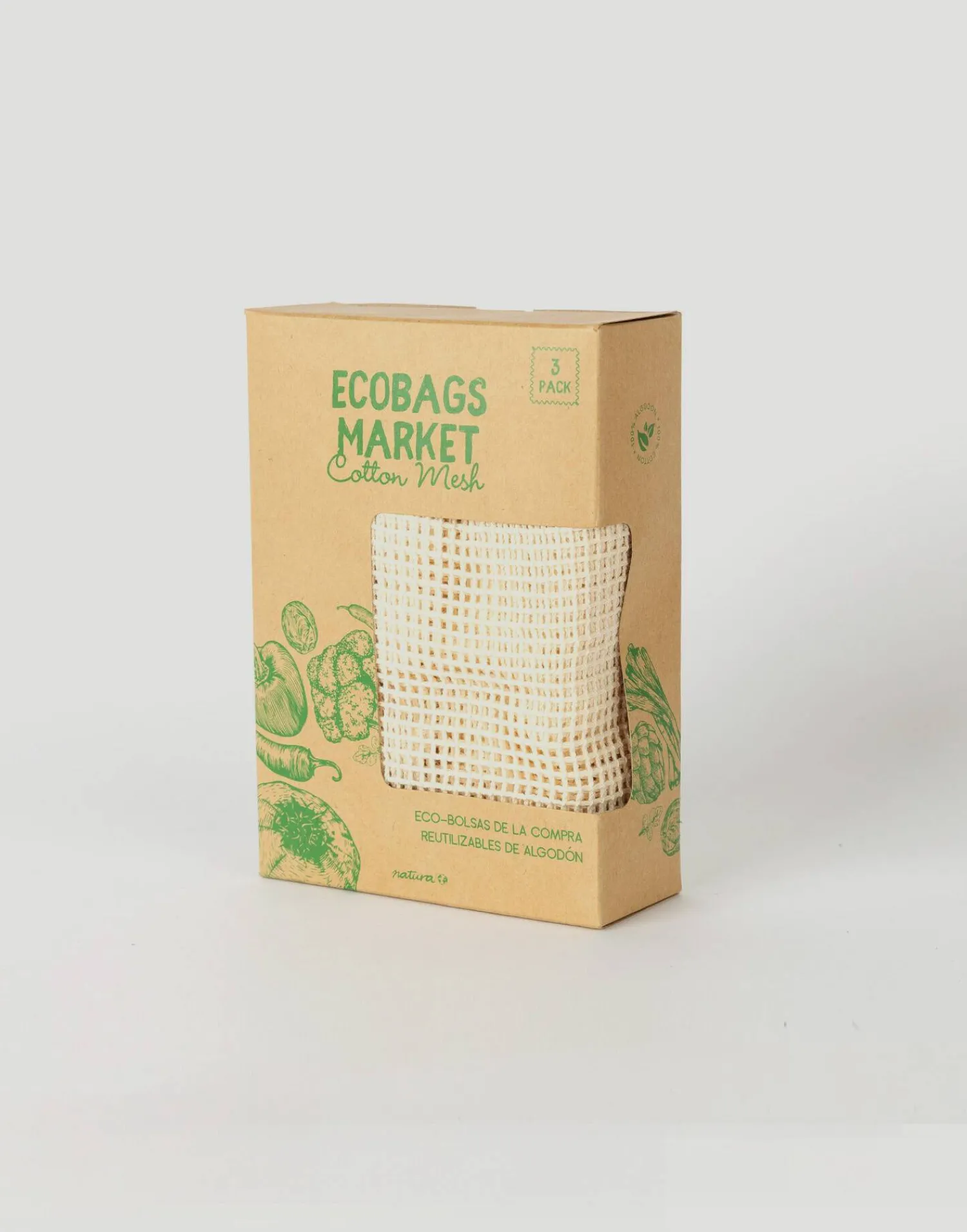 Set de 3 bolsas de algodón reutilizables para comprar a granel.