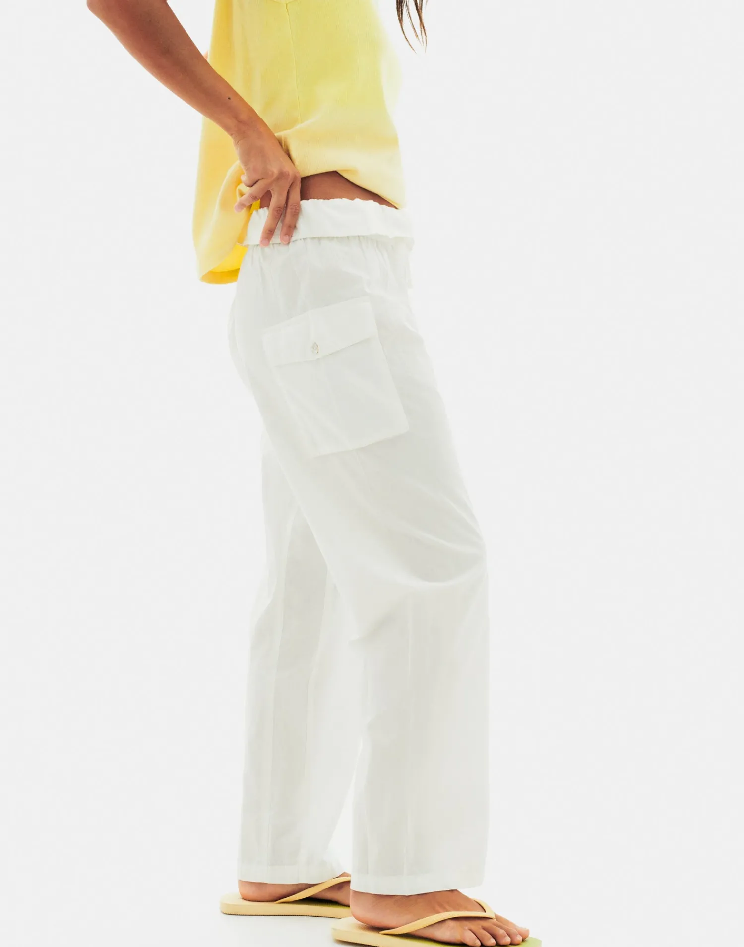 Pantalón cargo de corte relajado, con cintura elástica y bolsillos de plastrón. Inspirados en los pantalones Thai.