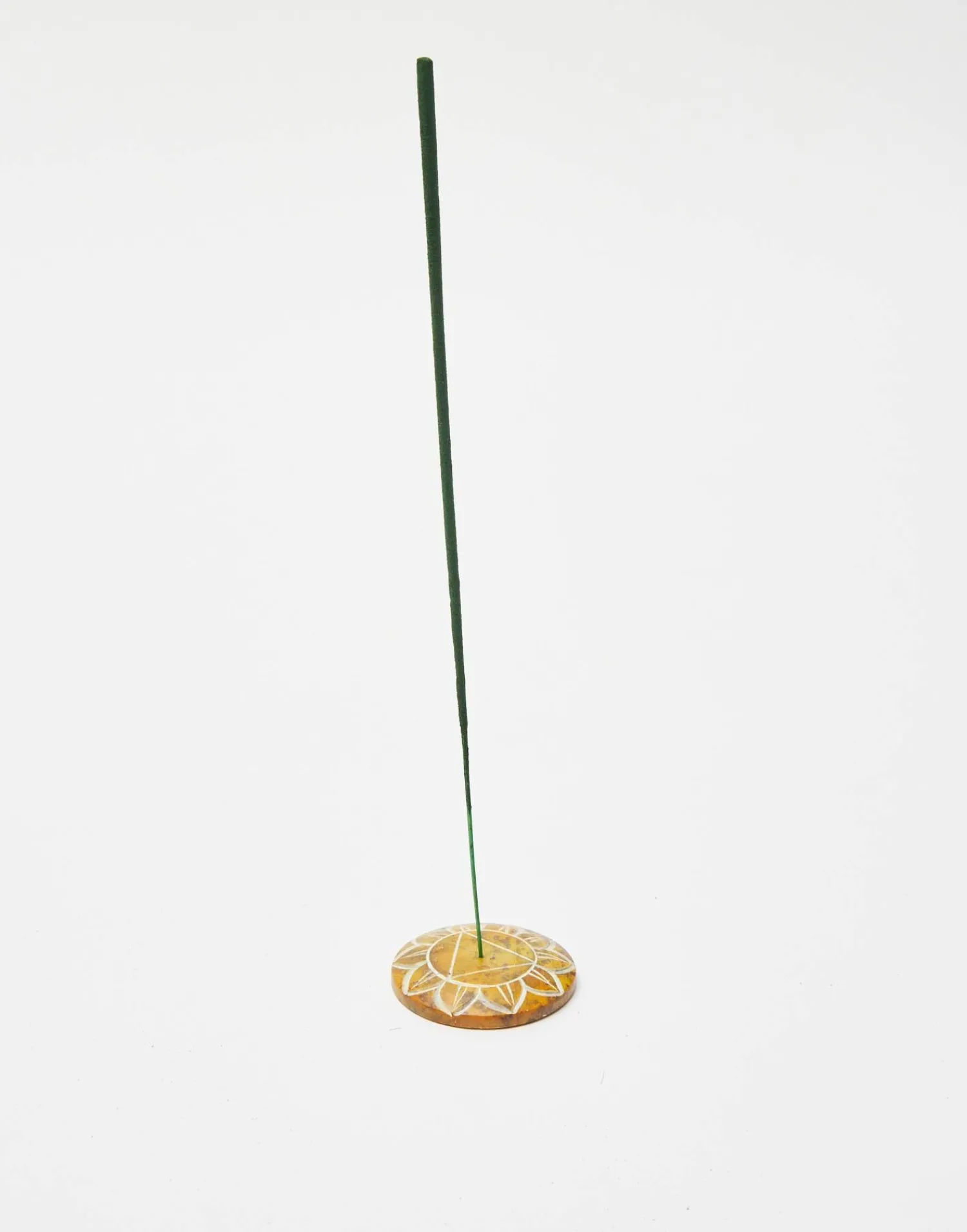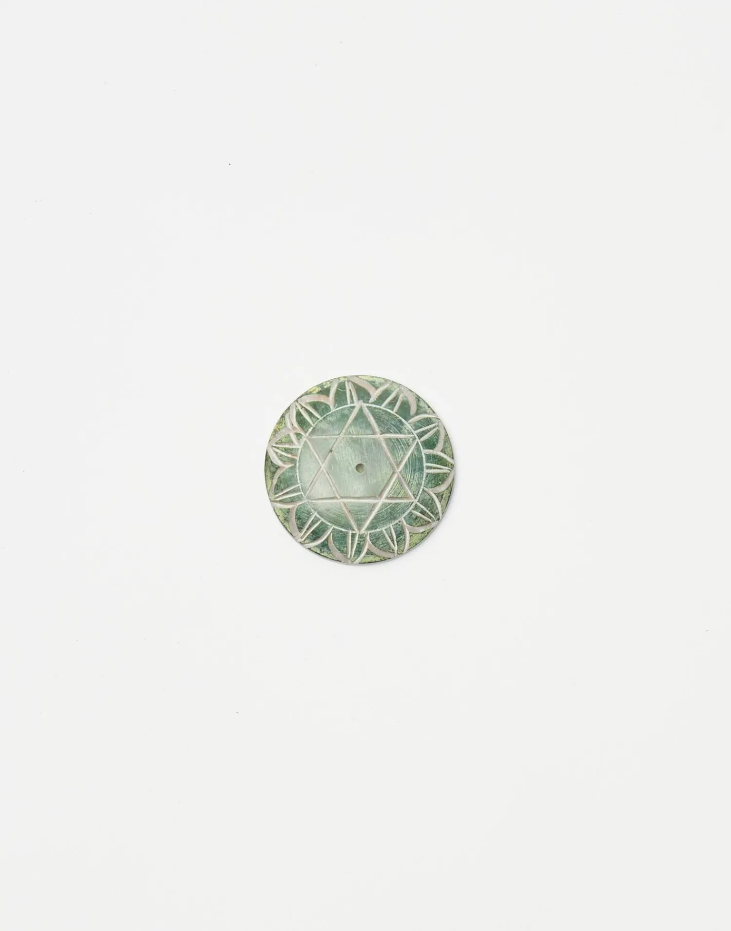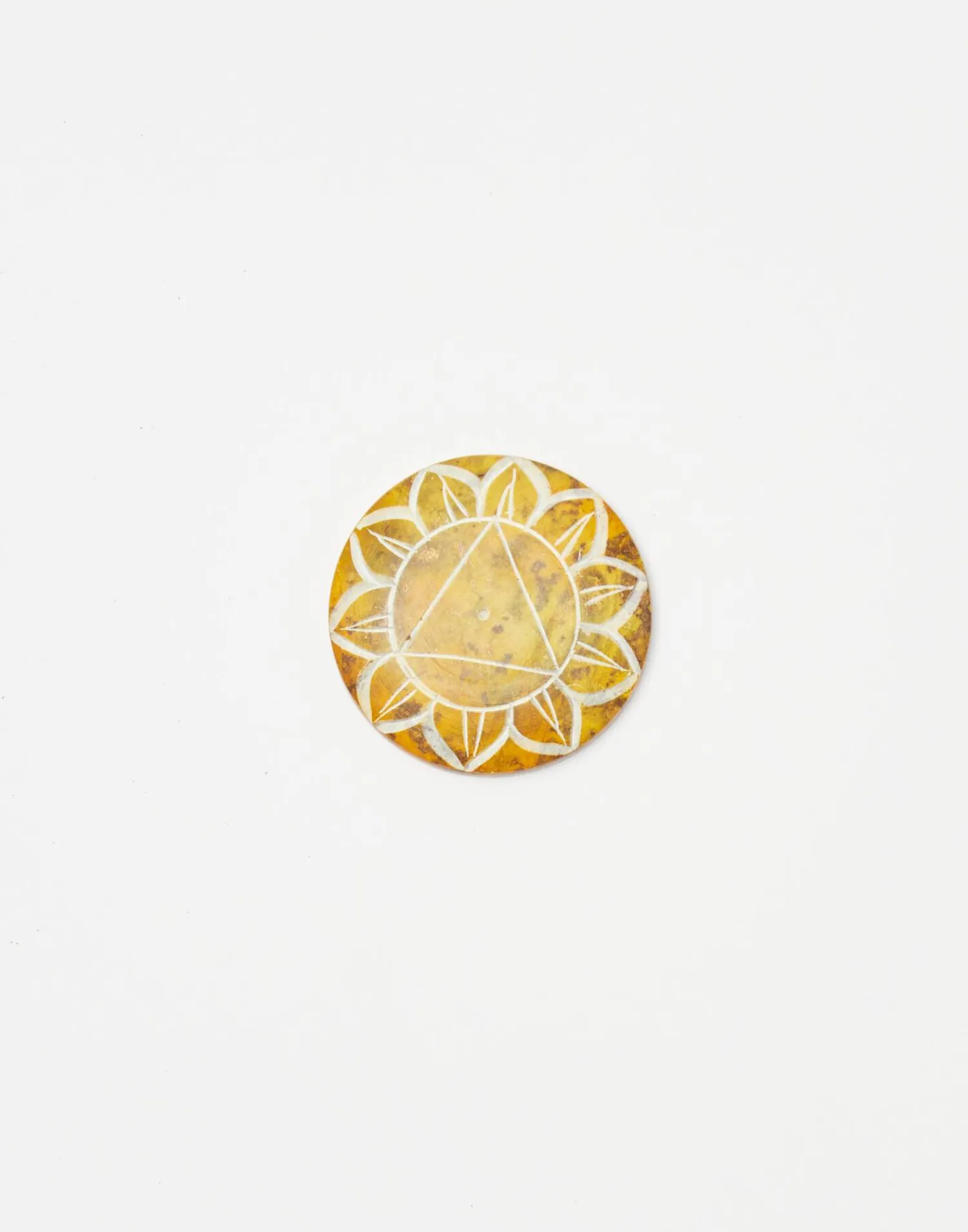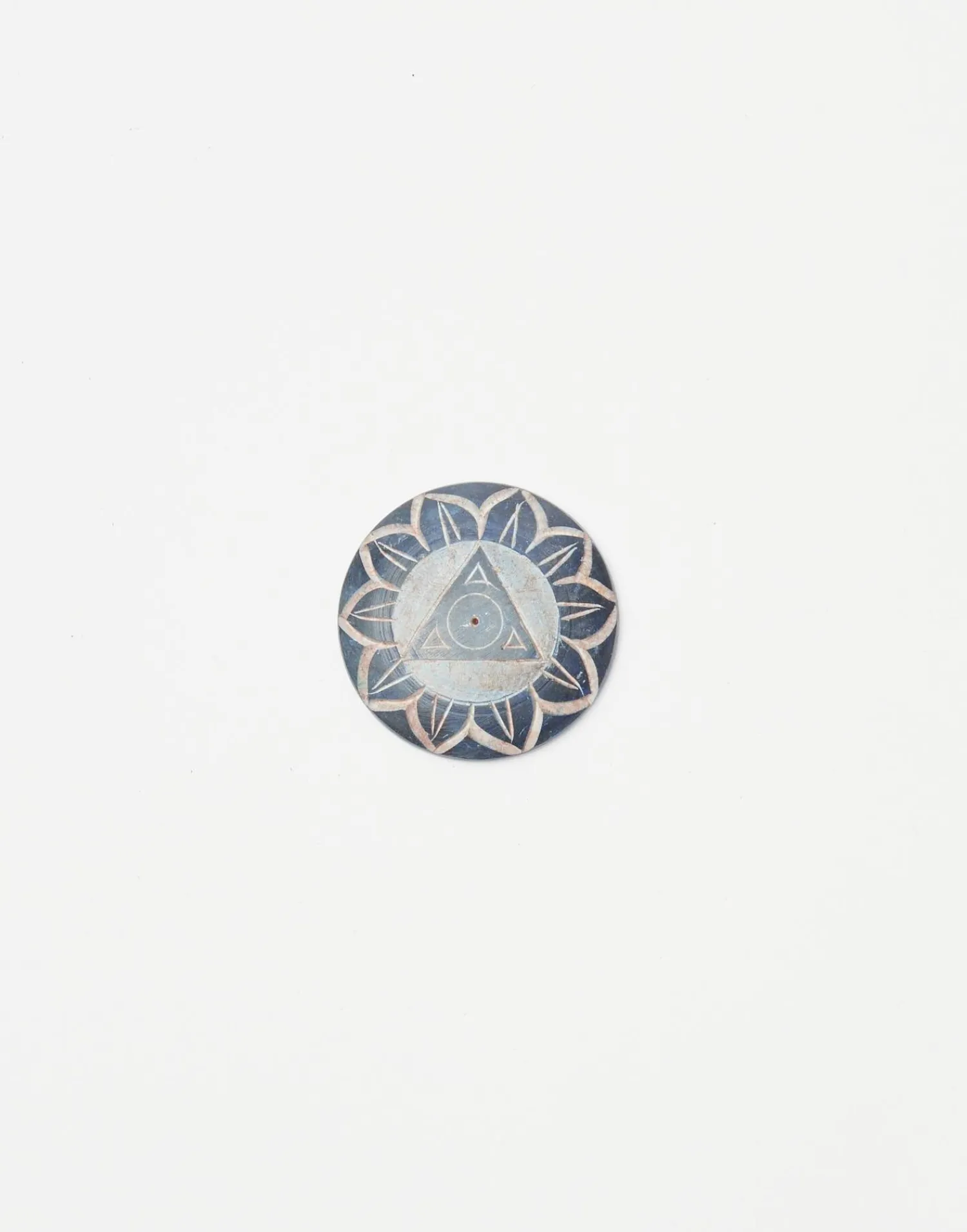 Portaincienso redondo con dibujo de chakra. Ranura para colocar los sticks de incienso en el centro.
