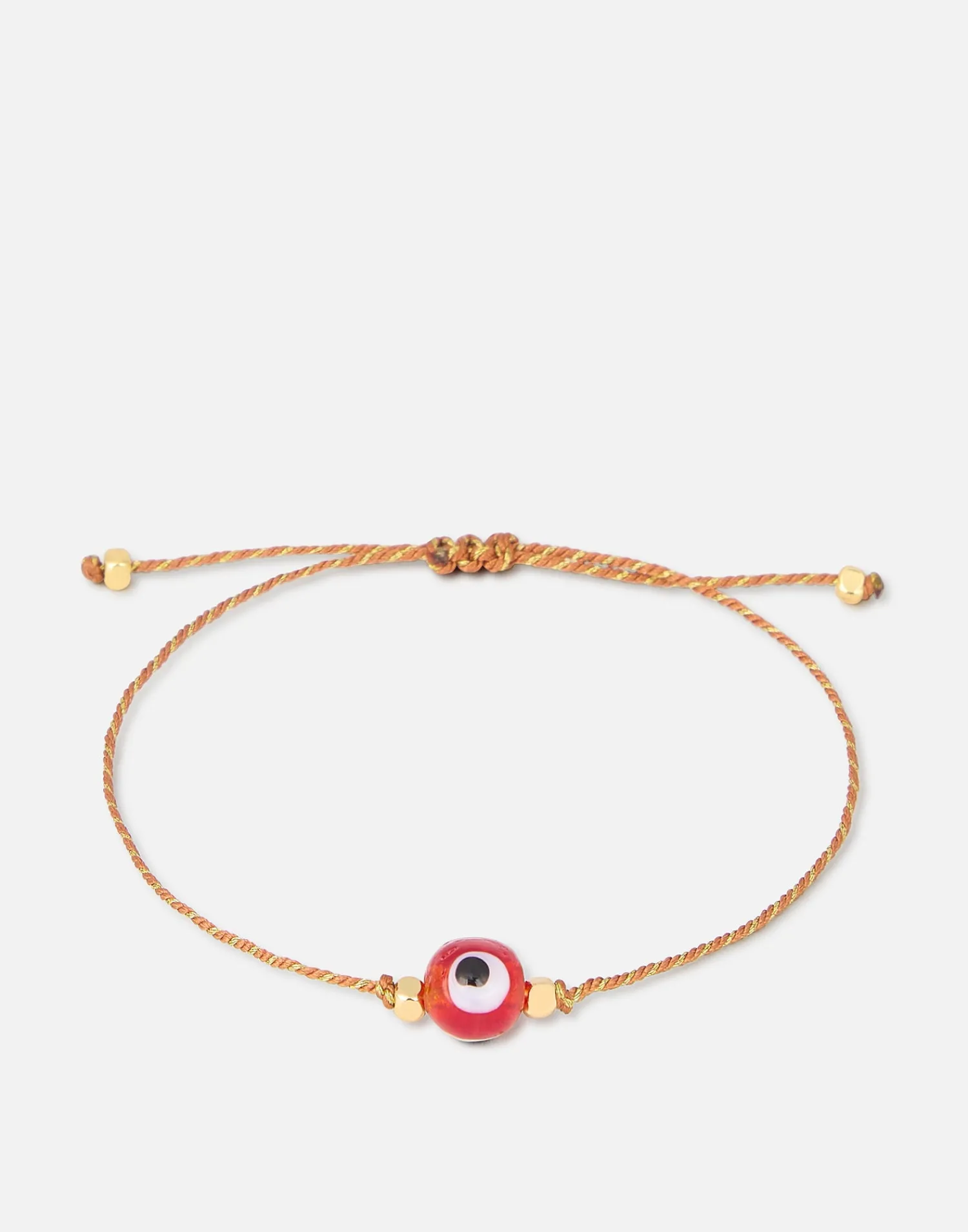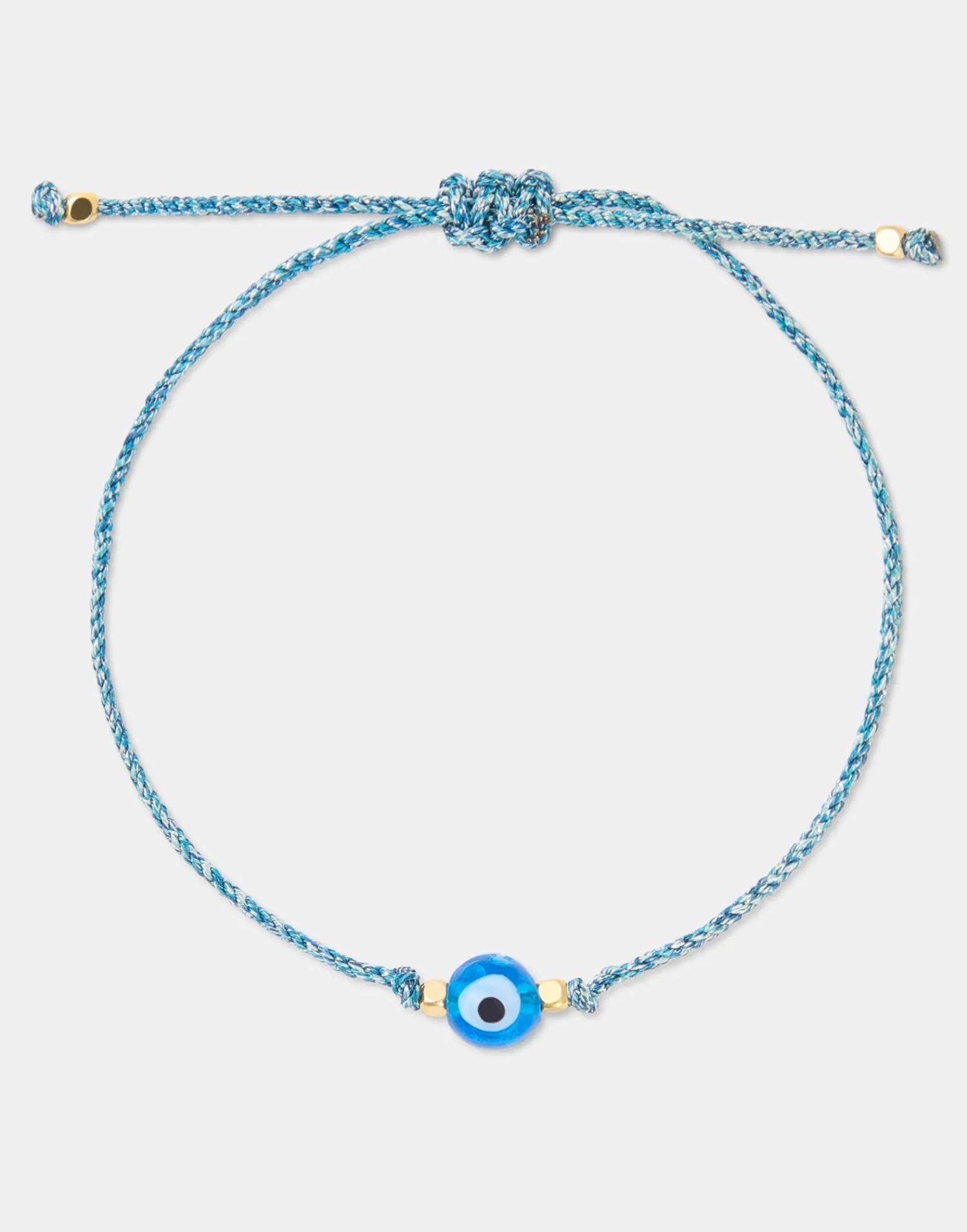 Pulsera de hilo con abalorio de ojo turco y cierre de nudo corredizo.