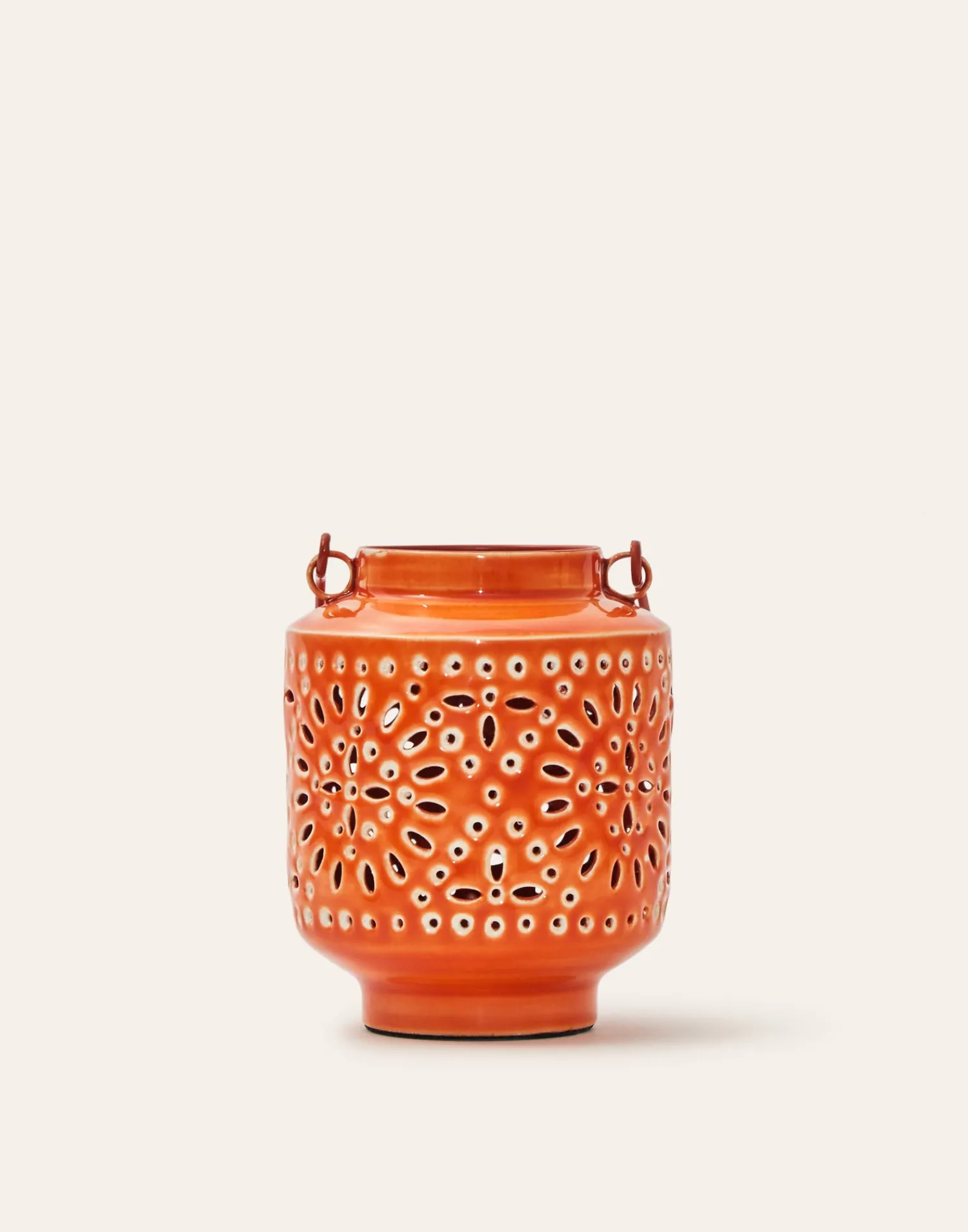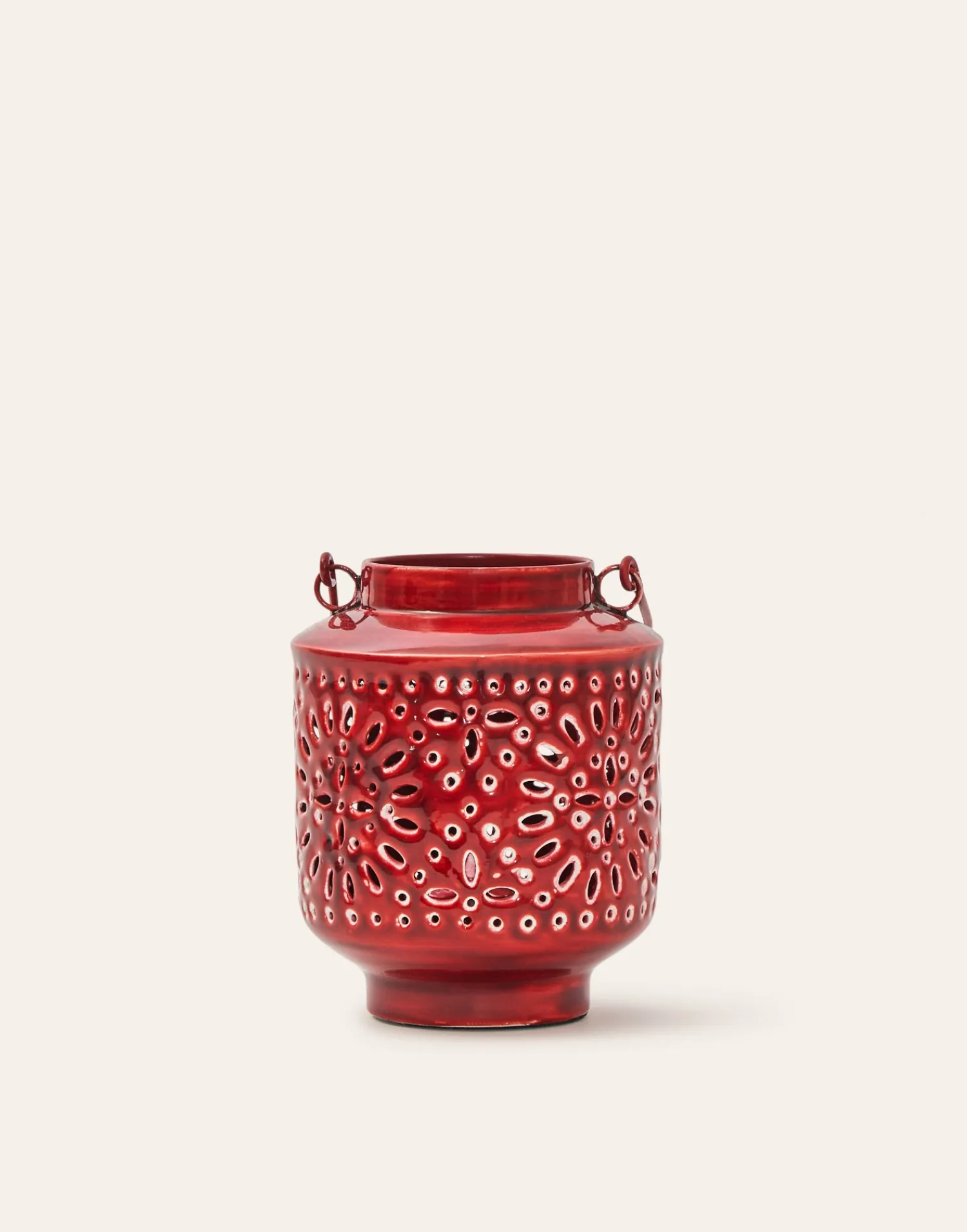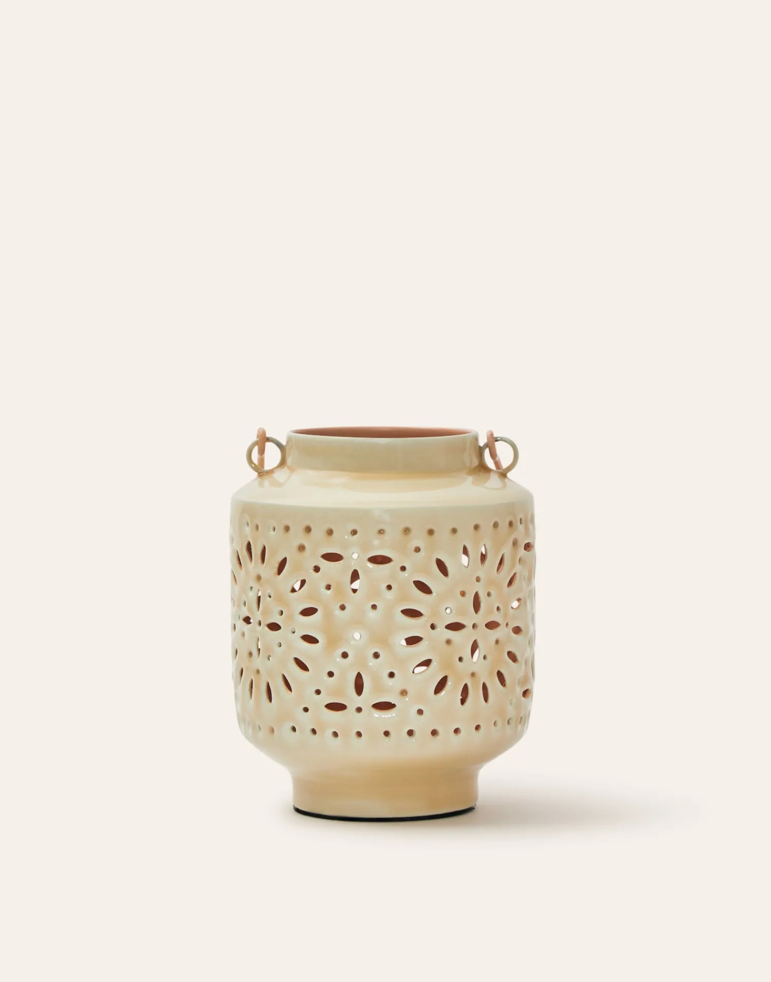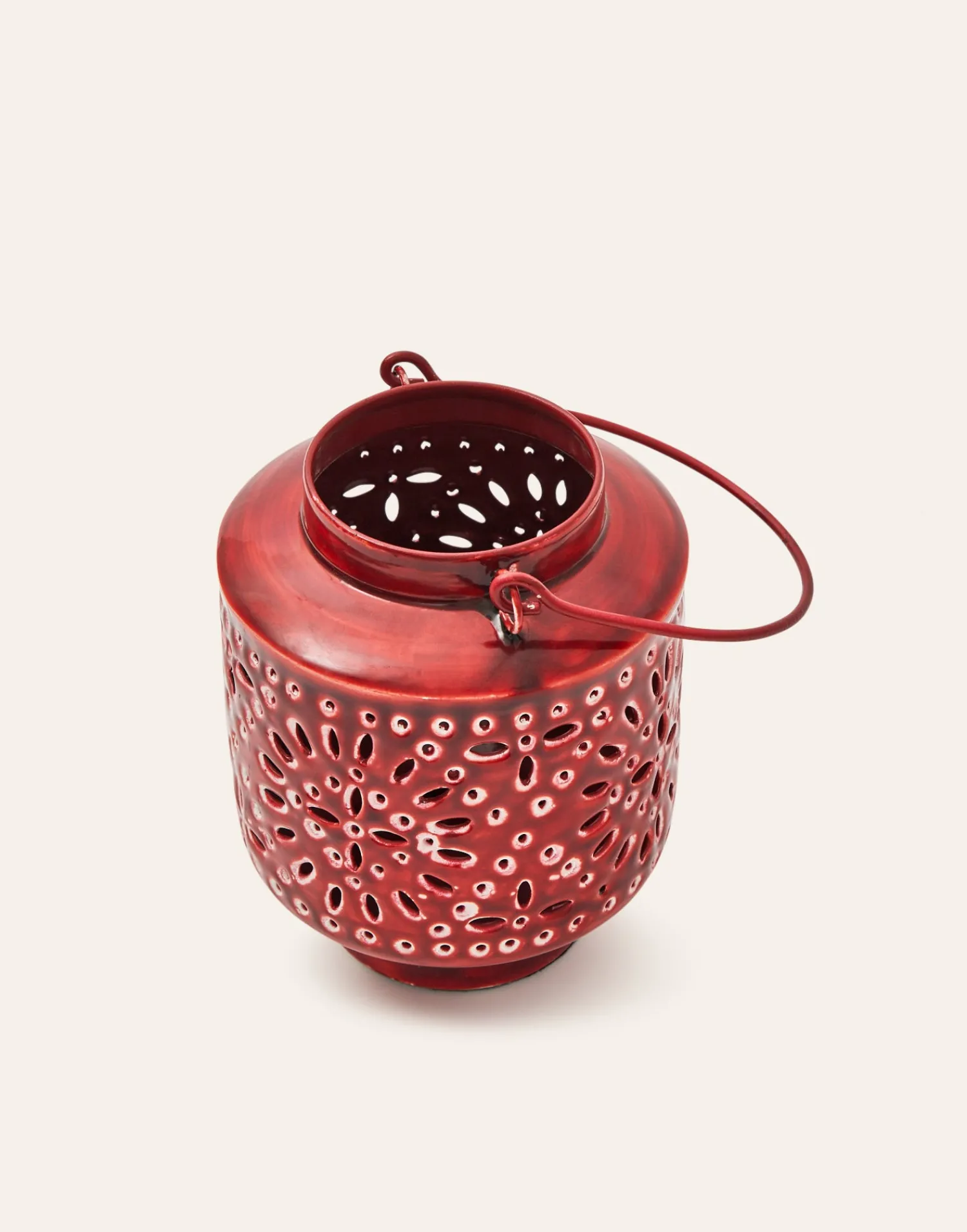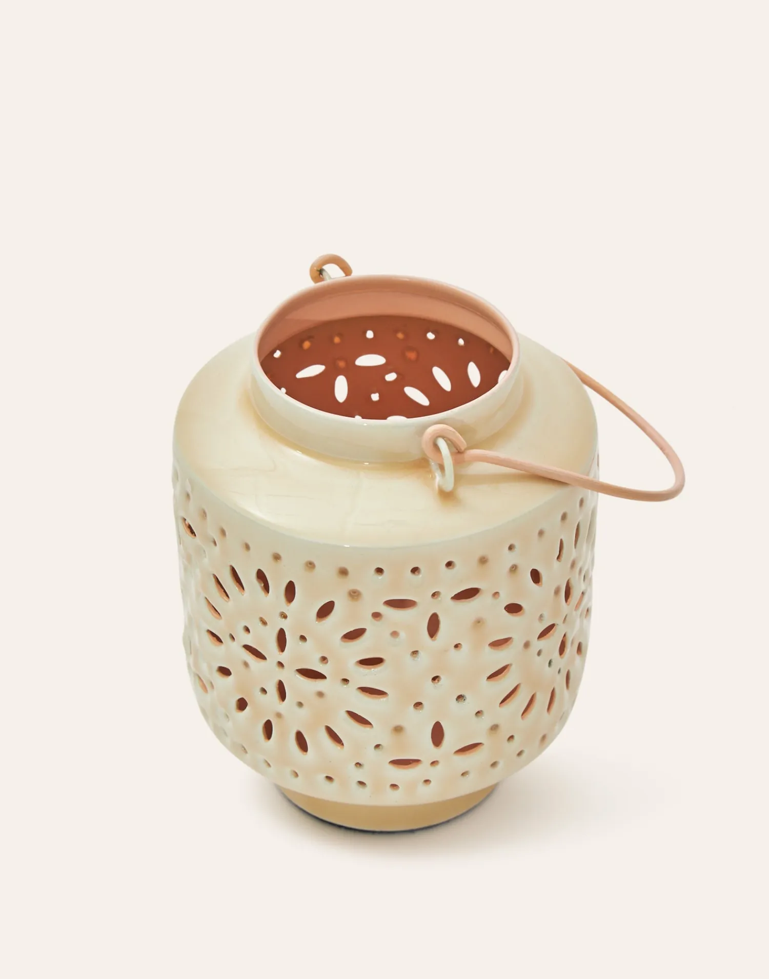 Farolillo de hierro troquelado para velas. Ideal para crear un ambiente acogedor y boho en tu hogar.