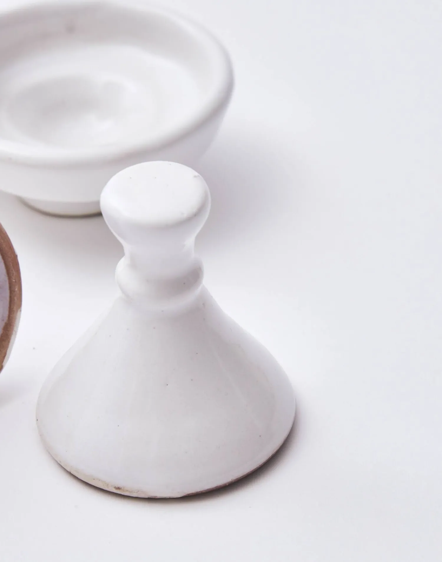 Especiero doble de cerámica hecho a mano en Marruecos. Ten siempre a mano la sal y la pimienta, tanto en la cocina como en la mesa, con este accesorio práctico y decorativo inspirado en los tajines tradicionales.