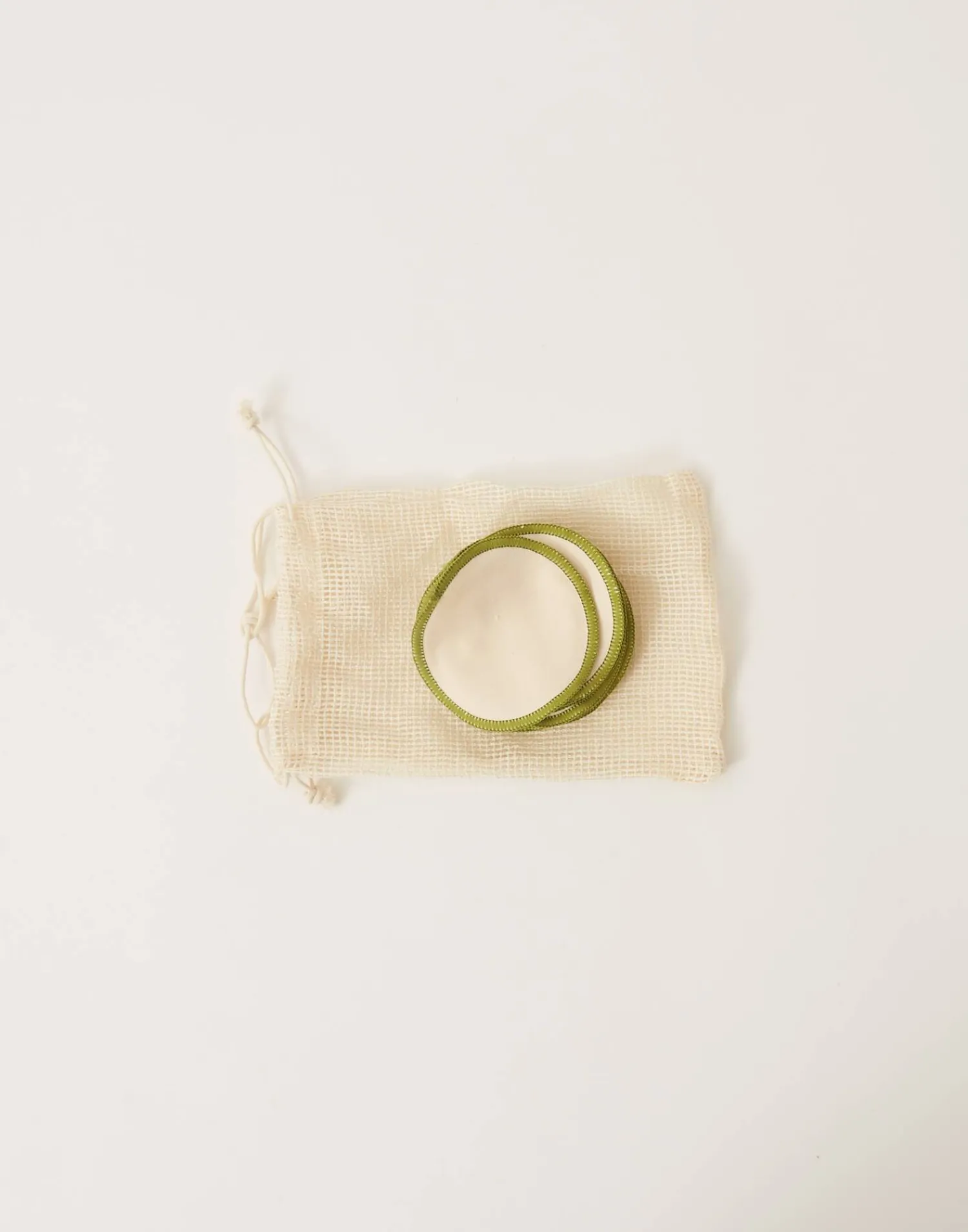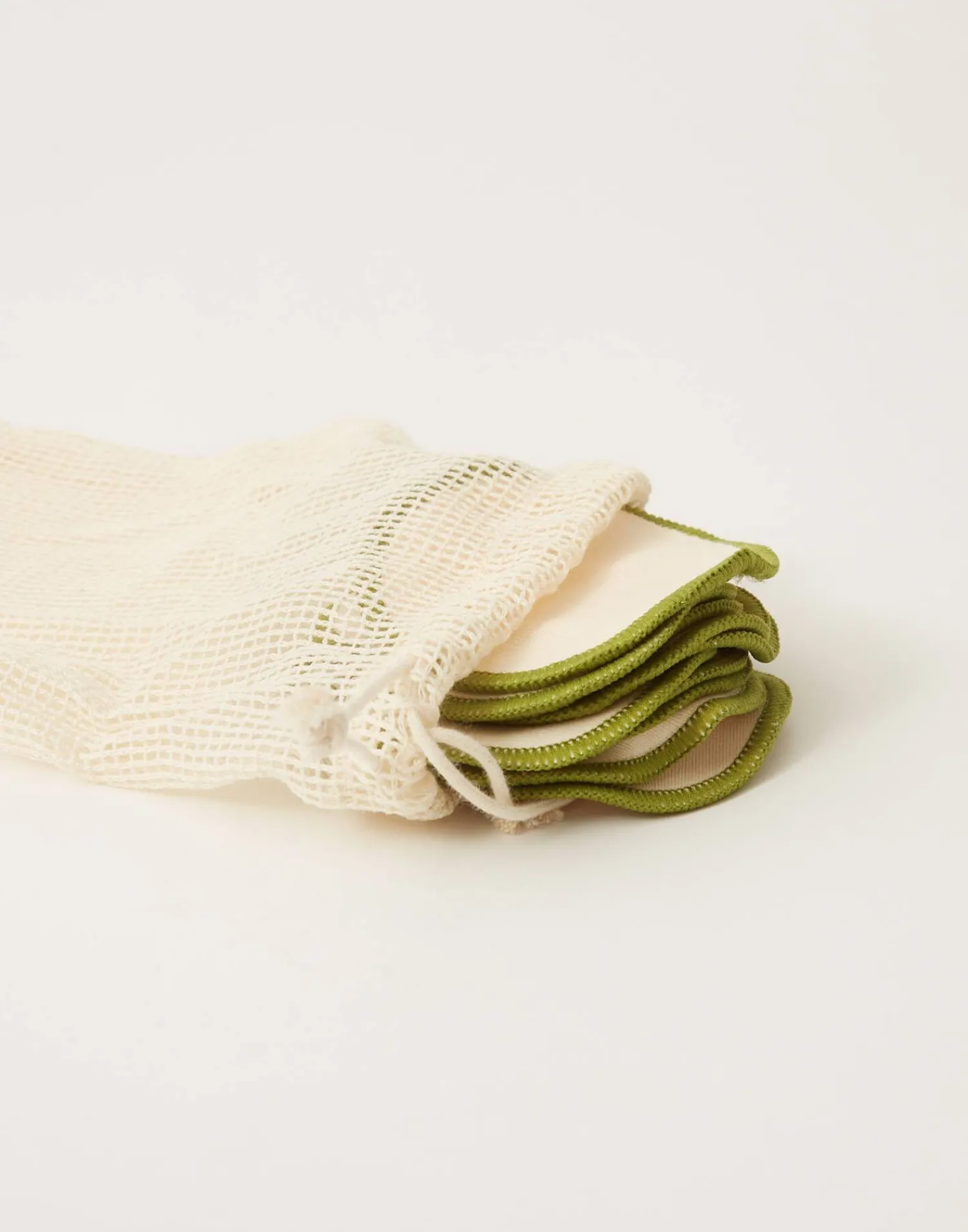 Set de 10 discos de limpieza facial, hechos de algodón y reutilizables. Vienen con una bolsita para facilitar su transporte y para poner en la lavadora. Reduce el consumo de productos de un solo uso con estos discos reutilizables.
