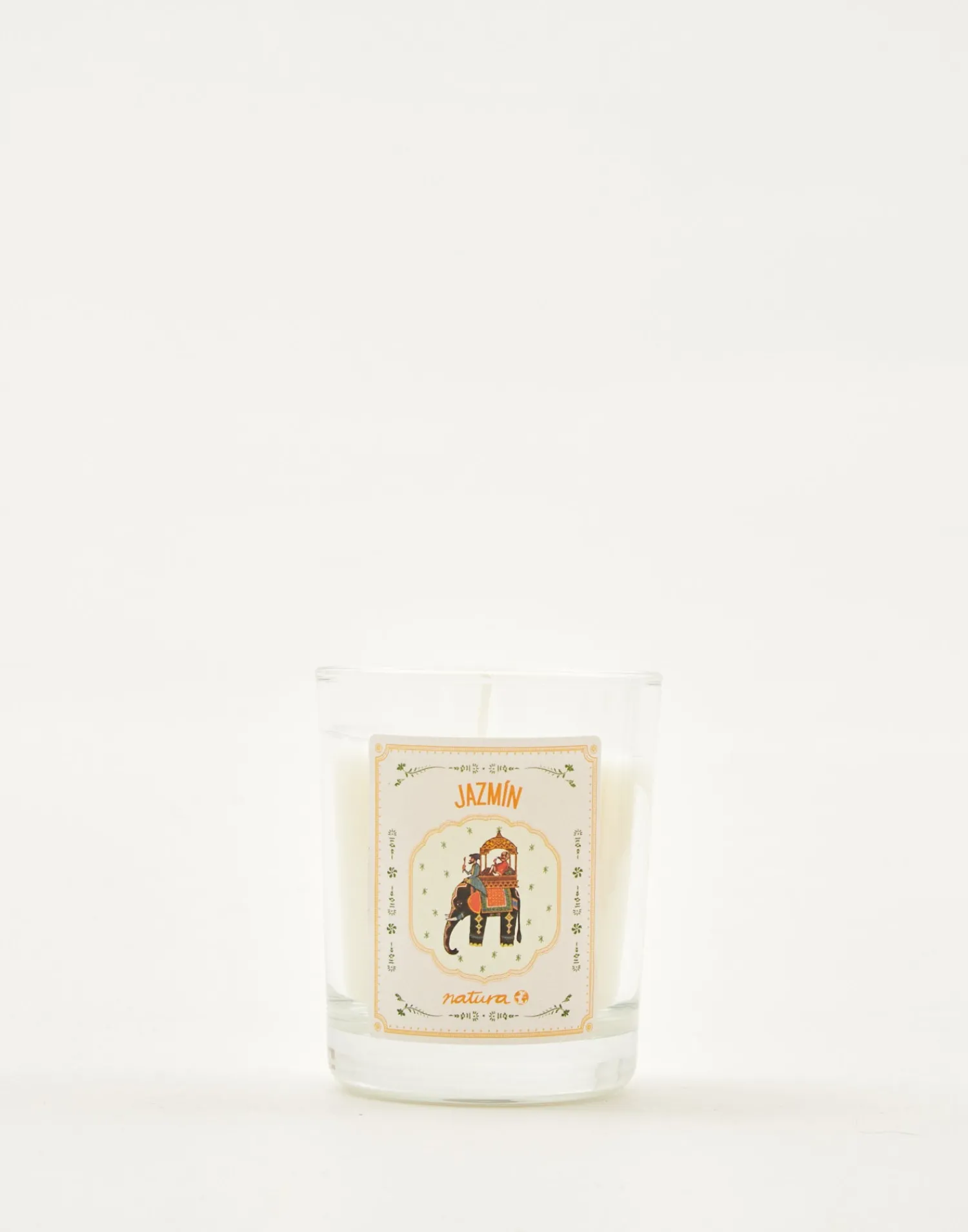 Vela de soja con mecha de algodón y recipiente de cristal. Fabricada en España.