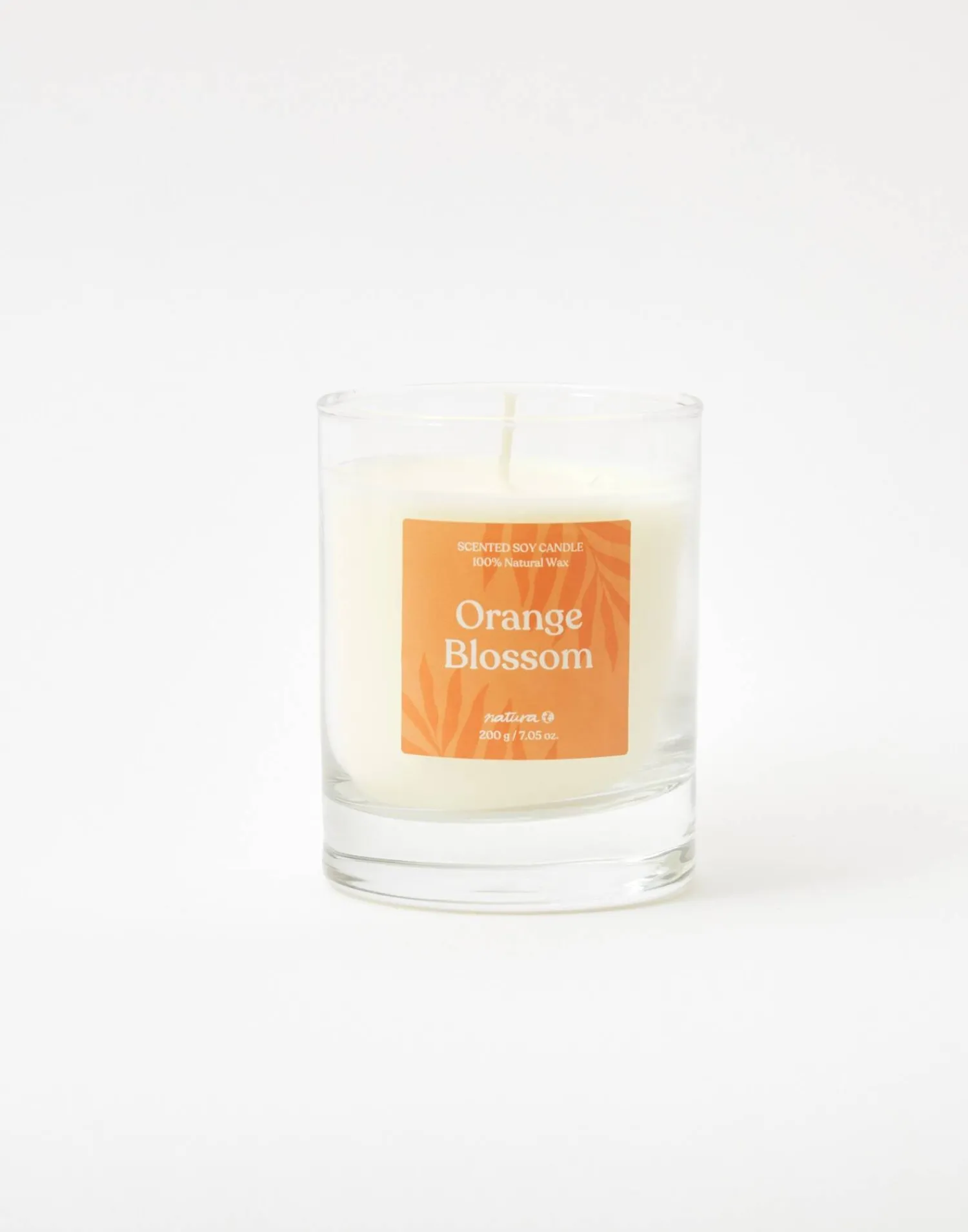 Vela aromática de cera vegetal, con mecha de algodón y tarro de cristal.